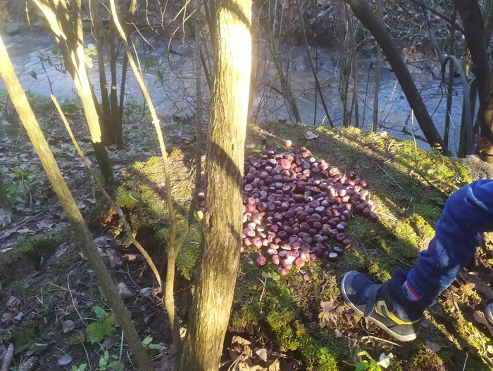 V pondělí 18. 12. už ráno vykukovalo sluníčko a byla by škoda toho nevyužít. Prvňáci i druháci sbalili zásoby kaštanů, které sbírali už od podzimu a vydali se k nejbližšímu lesíku. Blíží se Vánoce, přece i zvířátka si zaslouží pořádnou hostinu!