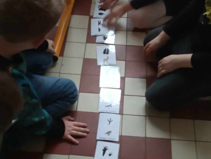 V lese pak hledali stopy zvířat a povedlo se! Sami pak správně určili, že se jedná o stopy srnek. Vy se můžete přesvědčit také, nálezy najdete ve fotogalerii níže. Poté žáci využili některé znalosti z hodin prvouky i češtiny. Pozorovali zimní přírodu, určovali stromy a jmenovali zvěř, kterou lze spatřit v zimě. Nakonec zapojili svou kreativitu tvorbou s přírodním materiálem. Další den ve vestibulu školy pokračovali žáci z 2.A pořádnou bojovkou, která končila tajenkou “Stopování zvěře”.