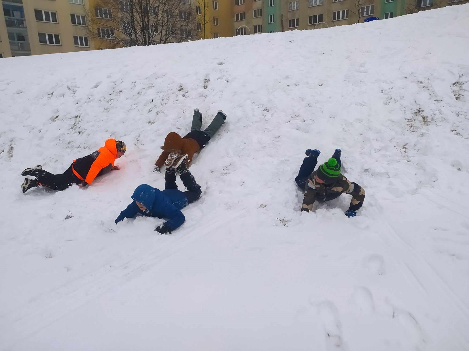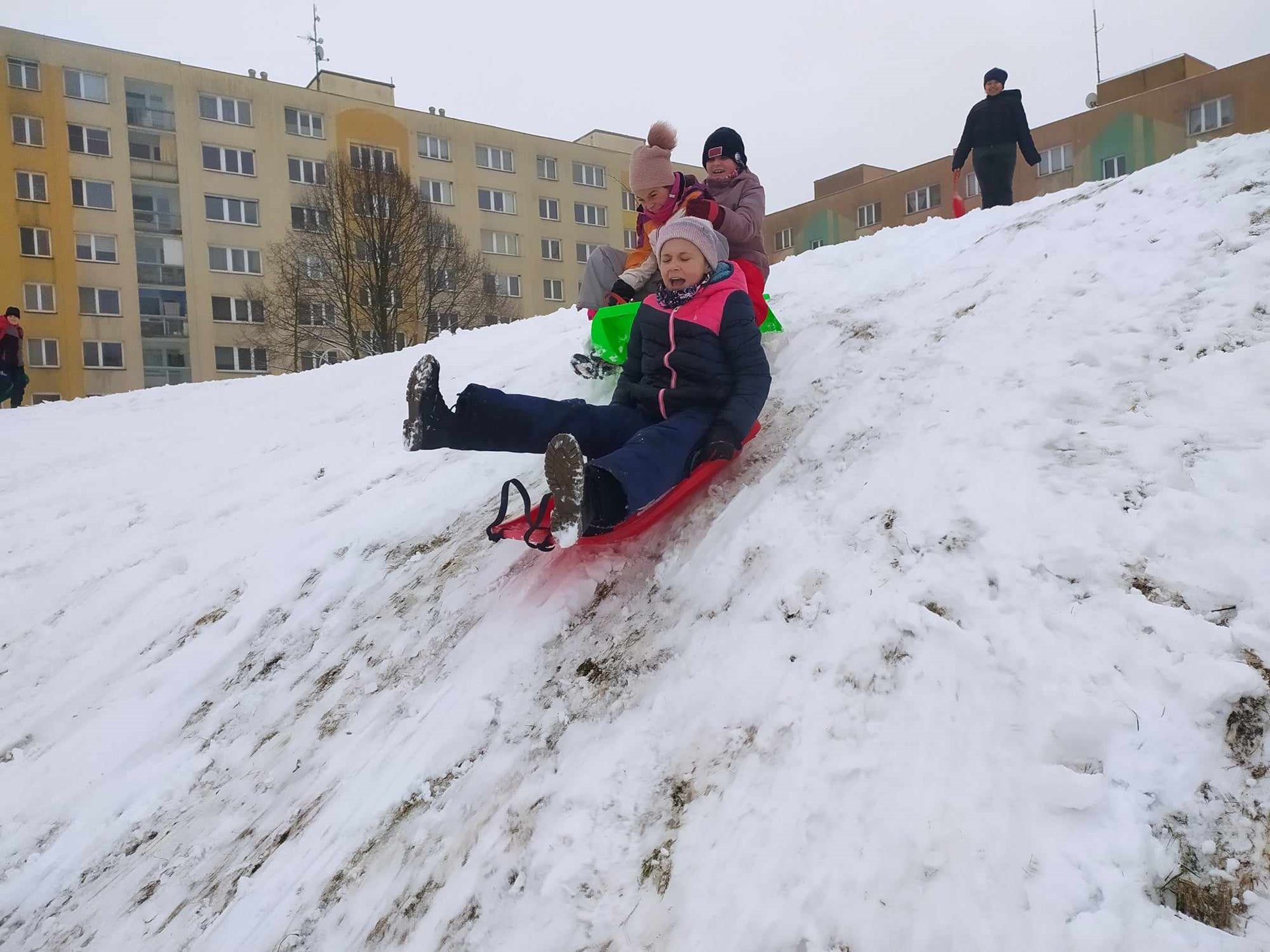 Když příroda nadělila čerstvý sníh, byla to pro nás jasná výzva k pohybu na čerstvém vzduchu. Žáci si přinesli boby, lopaty a s nadšením vyrazili na nedaleký kopec. Den plný radosti a pohybu začal sjížděním svahu, kde se všichni doslova předháněli v rychlosti a kreativních jízdách. Po vydatném bobování následovala tradiční koulovačka, která se nesla ve znamení týmového ducha a dobré nálady. Vrcholem zimního dovádění pak bylo stavění sněhuláků, obranných tvrzí a dokonce i zvířecích soch ze sněhu, které ukázaly šikovnost a fantazii našich žáků.