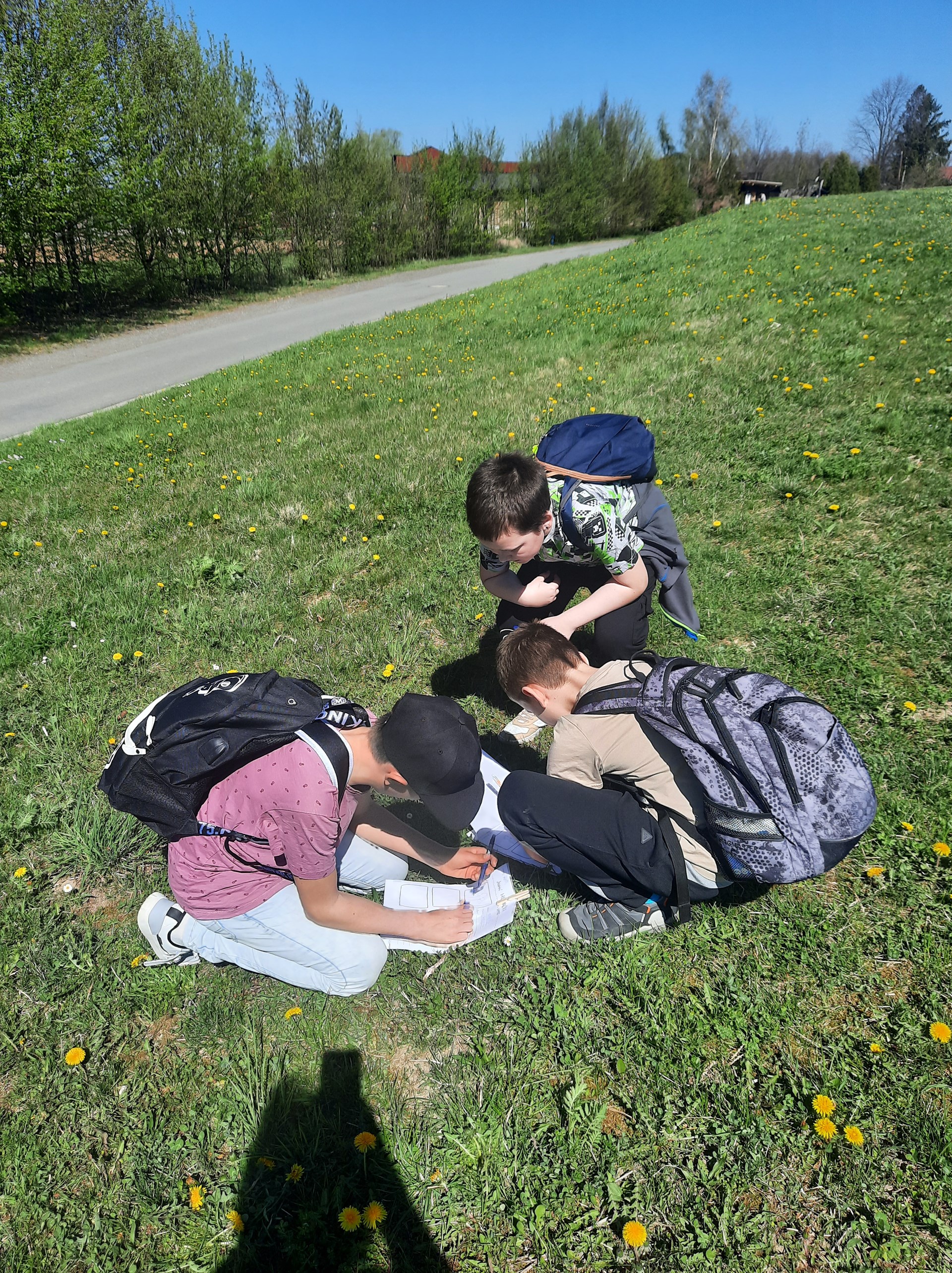 školy, podél domů se zahrádkami až došli na rozlehlou louku. Zde se žáci pustili do své práce. Podařilo se