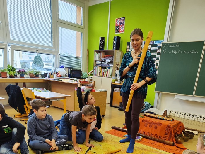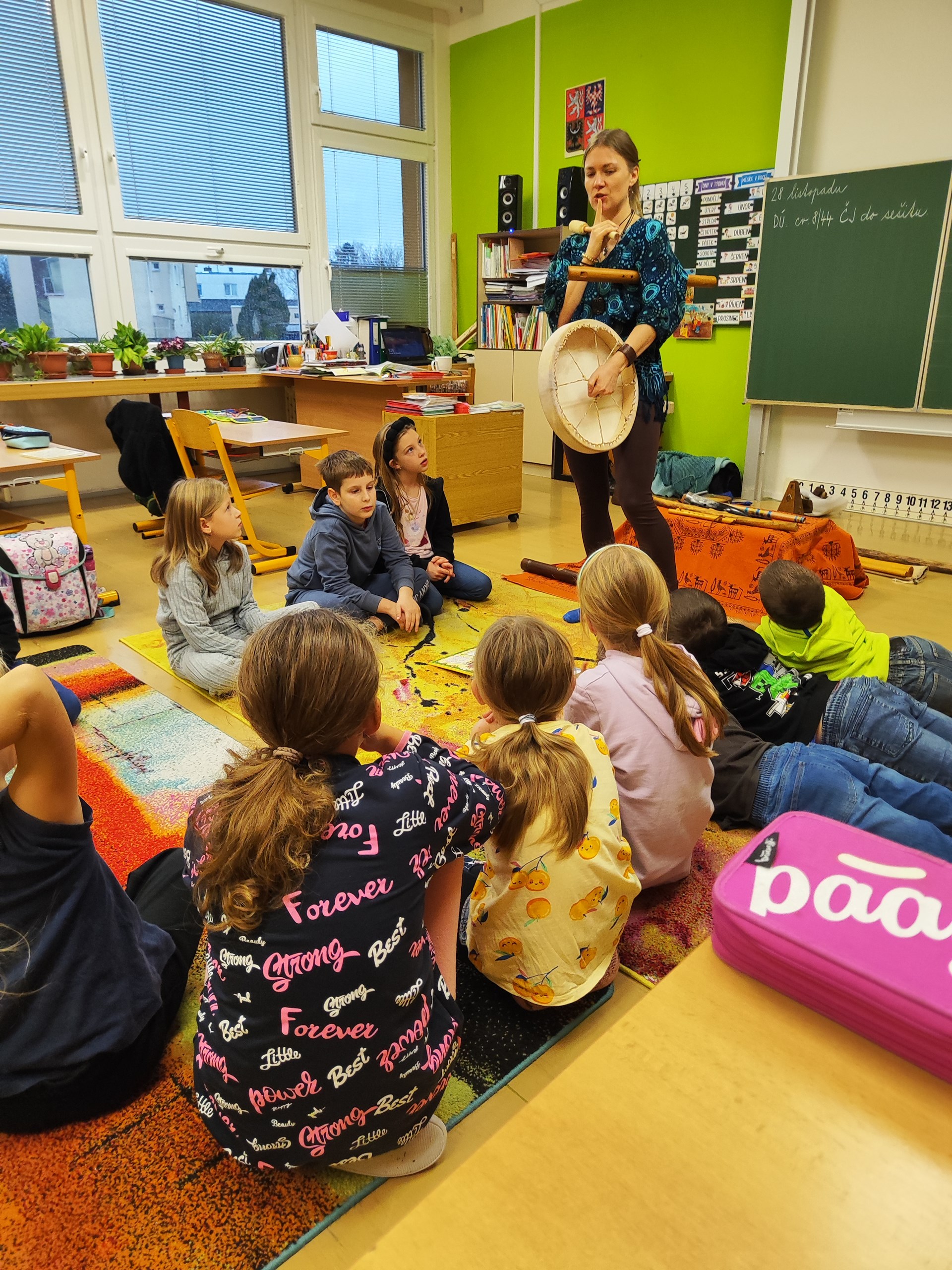Ve čtvrtek 28. 11. 2024 proběhly v naší třídě Divohrátky. Pod vedením zkušené paní lektorky Barbory Minarčíkové jsme se zúčastnili zážitkové a zajímavé hodiny muzikoterapie, ve které jsme cestovali po všech kontinentech a poznávali jsme pro nás neznámé hudební nástroje se zajímavými názvy. Hudební nástroje jsme si mohli prohlédnout, některé i vyzkoušet. Paní lektorka o hudbě a nástrojích poutavě vyprávěla a hrála na ně. Zážitková a zároveň i relaxační hodina příliš rychle uběhla.