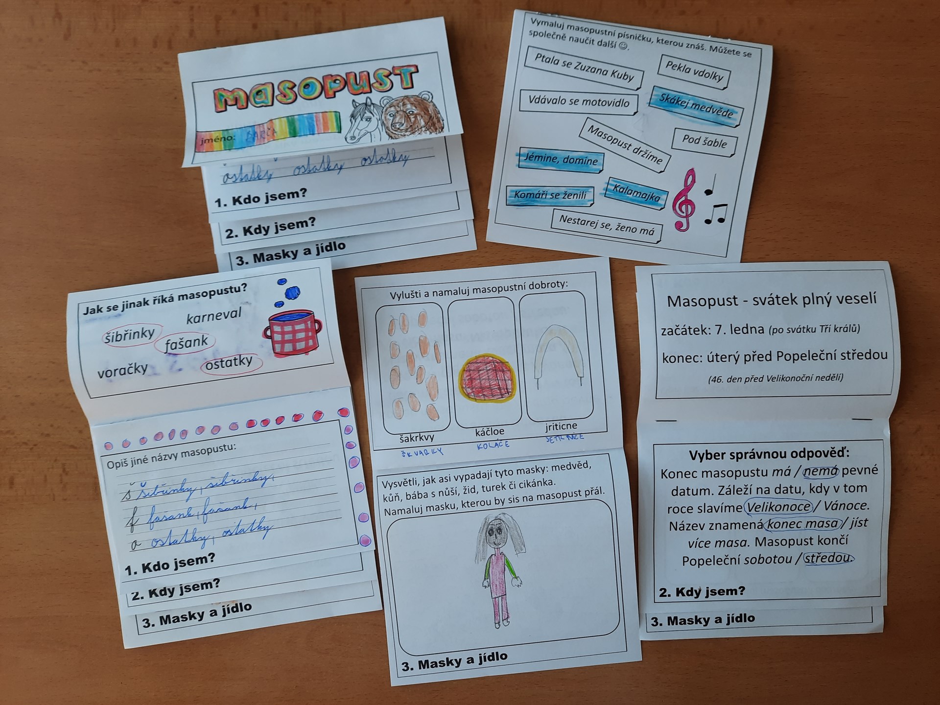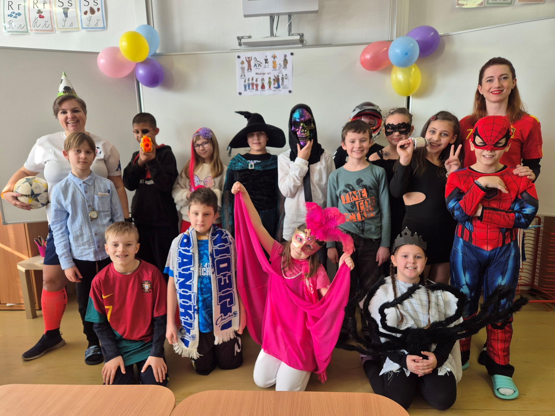 Už kolem půl osmé ráno je v prostoru před školou vidět, že dnes to nebude obyčejný školní den. Do školy se totiž nehrnou žáci, ale různá podivná stvoření. Před školou bylo možné vidět různé superhrdiny, princezny, sportovce, kovboje, ale třeba i šašky. Ano! Ve škole se pořádá karneval. Součástí karnevalového dne ale nebyl jen tradiční průvod masek zakončený veselicí za zvuku hudby v tělocvičně. Žáci se tento den také mnohému naučili. Ti nejmenší tancovali s balónky, foukali do bambulek, vytleskávali slabiky, vyráběli klauny a různé škrabošky, ale o karnevalu si také četli. Ti starší pak s nejrůznějšími texty aktivně pracovali za použití metod RWCT, tedy metod kritického myšlení, které žákům pomáhají pracovat s informacemi. Vyzkoušeli si tak tvořit myšlenkové mapy, porovnávat různé aspekty masopustu, ale i rozšiřovat slovní zásobu. Jinde si zase žáci zkusili vymýšlet různé karnevalové příběhy. Žáci se nezaměřovali jen na práci s textem. Výborně tohoto tématu využili i v geometrii. Škrabošky vyráběli pomocí rýsování úseček, masopustní koláče zase pomocí kružnic. Výzvou pak byla diskuze v anglickém jazyce o nejrůznějších maskách. Mnohému se tak naučili a přitom si užili zábavný den.