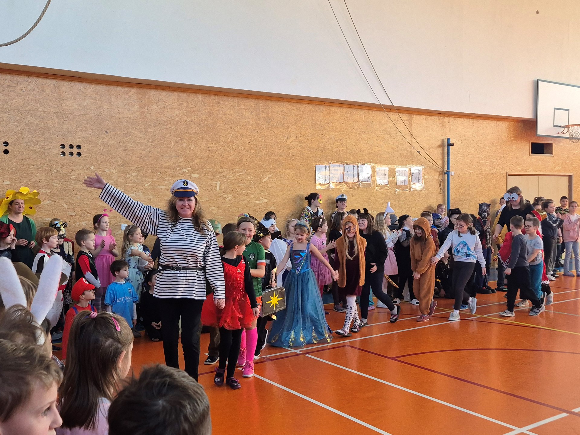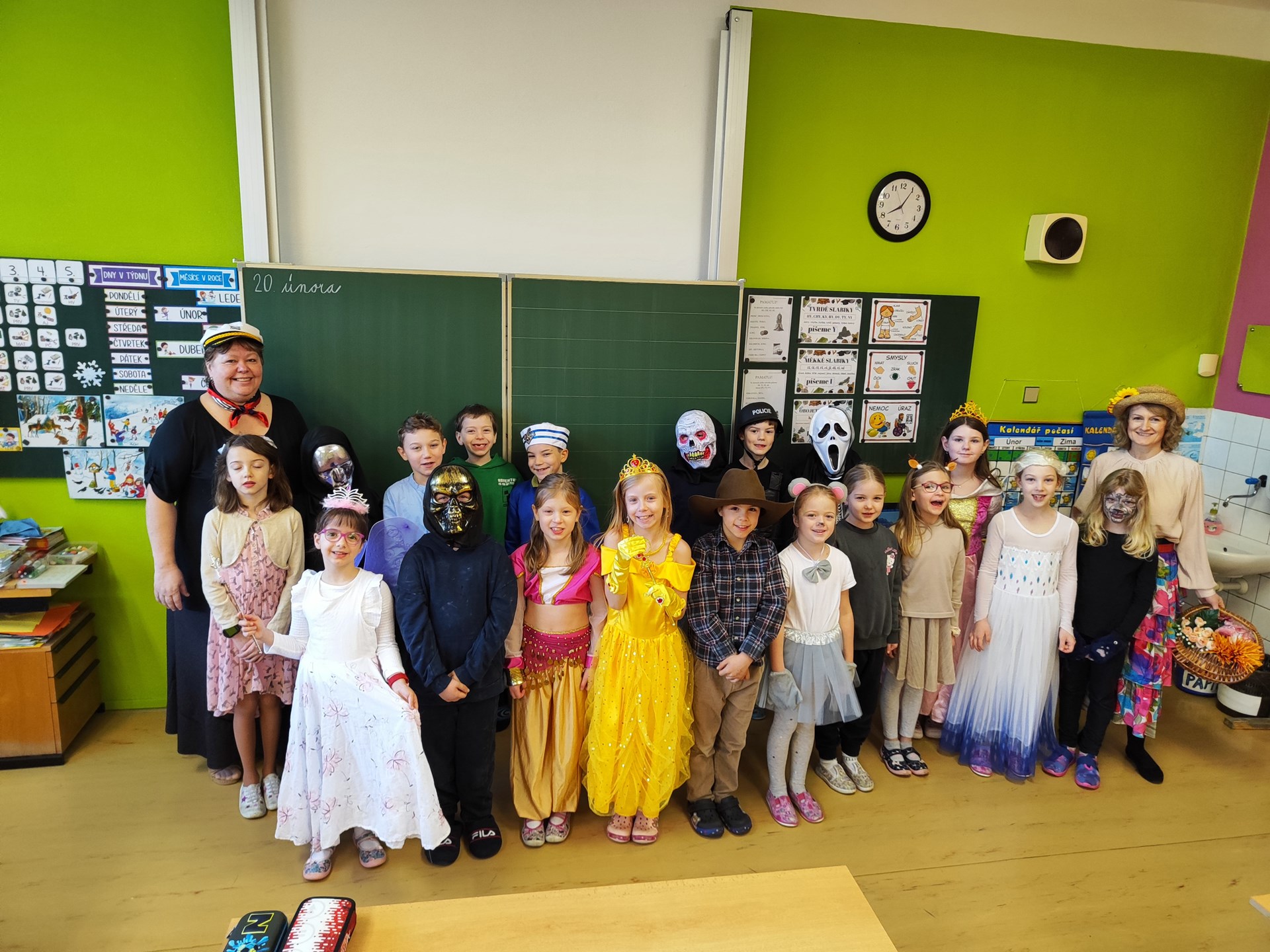 Už kolem půl osmé ráno je v prostoru před školou vidět, že dnes to nebude obyčejný školní den. Do školy se totiž nehrnou žáci, ale různá podivná stvoření. Před školou bylo možné vidět různé superhrdiny, princezny, sportovce, kovboje, ale třeba i šašky. Ano! Ve škole se pořádá karneval.