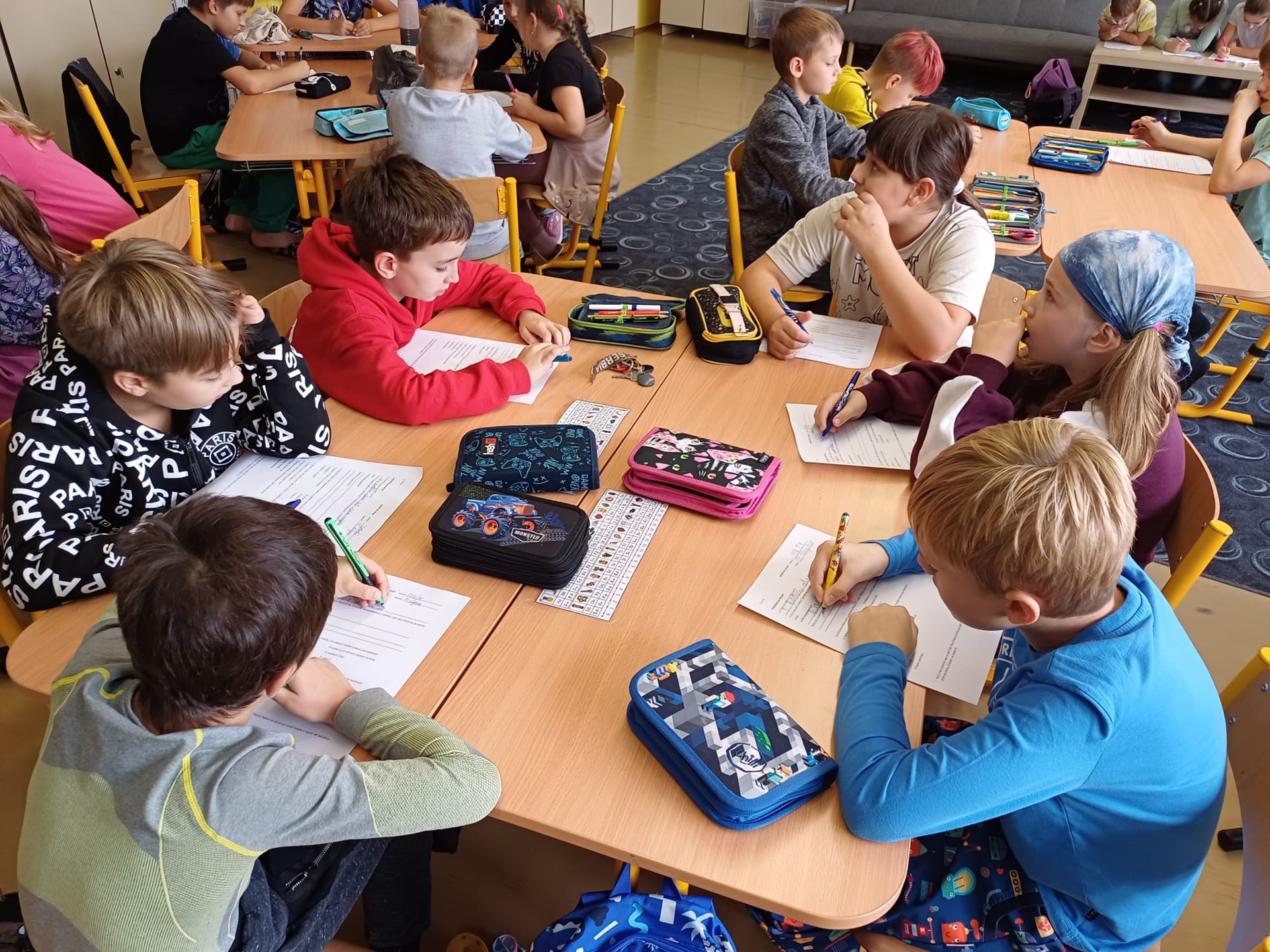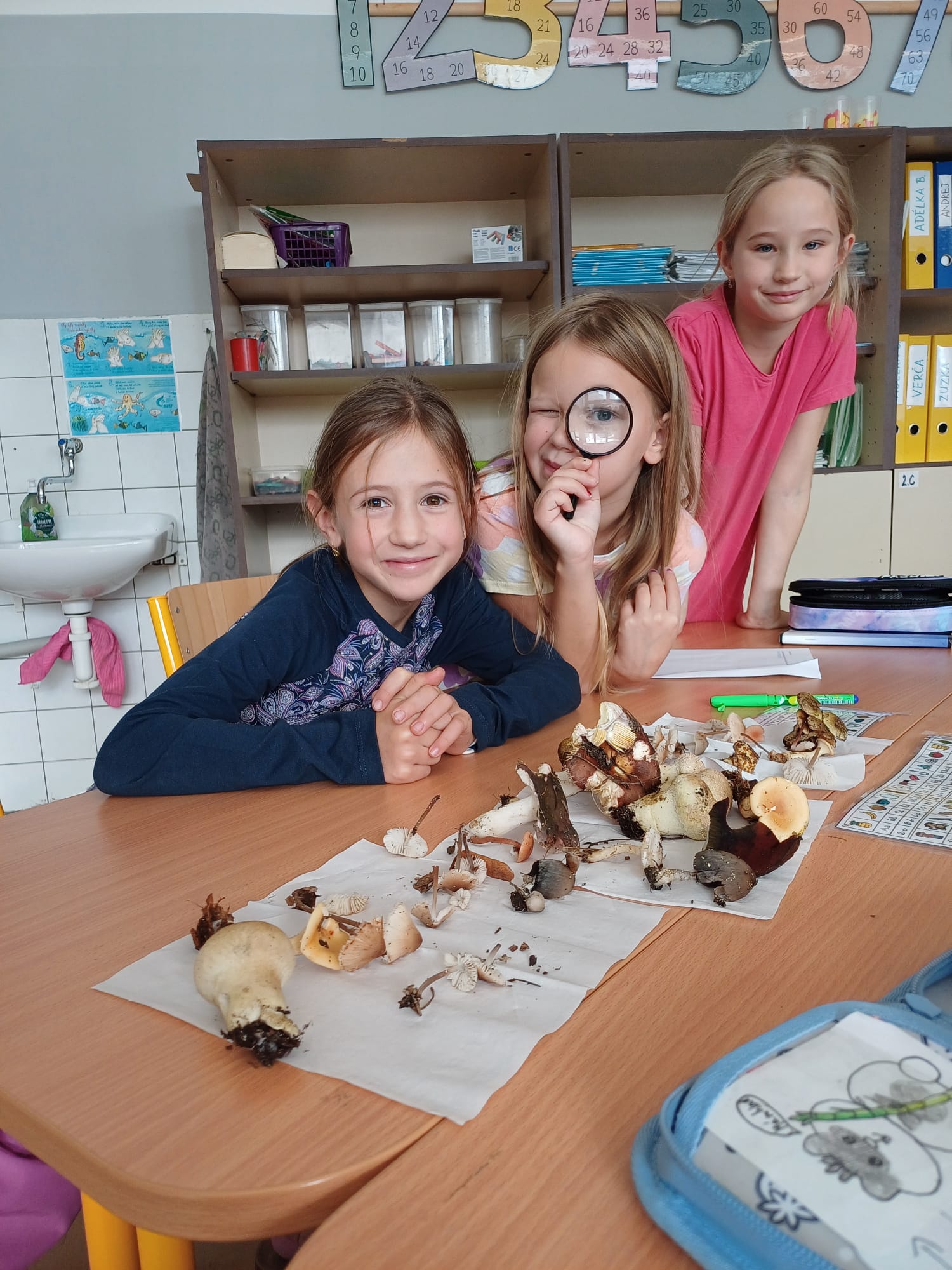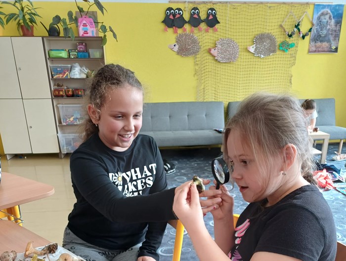 V pátek 11. října jsme se s žáky třídy 3. B a 3. C vydali v rámci projektového dne do lesa na houby. Hned z rána jsme vyšli klidnou pěší cestou do blízkého lesa, kde jsme posvačili, vysvětlili si chování v lese, rozdělili se do skupin a vydali se na houby. Nasbírali jsme pár hříbků a kvůli chladnému počasí jsme šli zpátky do školy, kde jsme v našem programu pokračovali. Popisovali jsme stavbu houby, rozdělovali houby na jedlé, nejedlé a jedovaté, za pomocí lupy jsme zkoumali detaily těla houby atd. Poslední vyučovací hodinu jsme strávili v tělocvičně, kde jsme se pohybovými hrami zahřáli, stmelili kolektivy a užili si spoustu zábavy.
