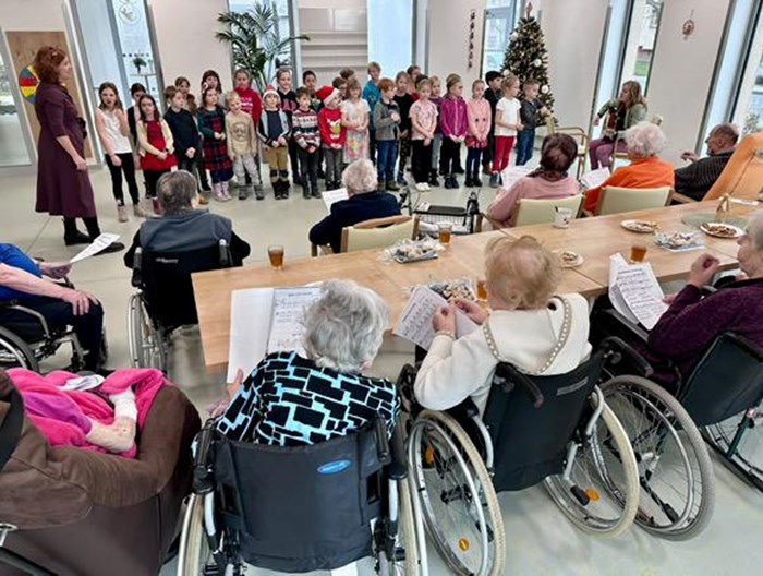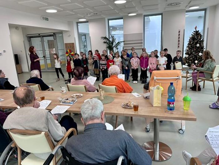 Čtvrteční dopoledne malých školáků se neslo ve vánočním duchu společného zpěvu s klienty Domova pro seniory pod Bílou horou.