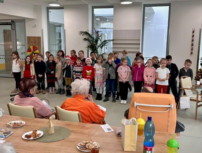 Čtvrteční dopoledne malých školáků se neslo ve vánočním duchu společného zpěvu s klienty Domova pro seniory pod Bílou horou. Děti ze tříd 1.A, 2.B a 2.C za kytarového doprovodu paní učitelky Ivy Eichnerové zazpívaly pásmo vánočních koled a předaly drobné, s láskou vyrobené dárky, se kterými dětem pomohli také kamarádi ze třídy 2.A. Společné milé setkání a muzicírování napříč generacemi mělo velmi obohacující význam i pro naše malé školáky, kteří si tak mohli vyzkoušet roli snad vánočního skřítka či dobrého anděla? Protože každý dobrý skutek se nejen v tomto čase počítá.