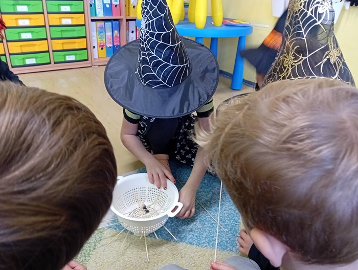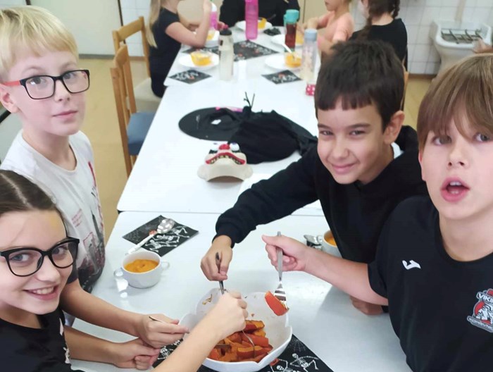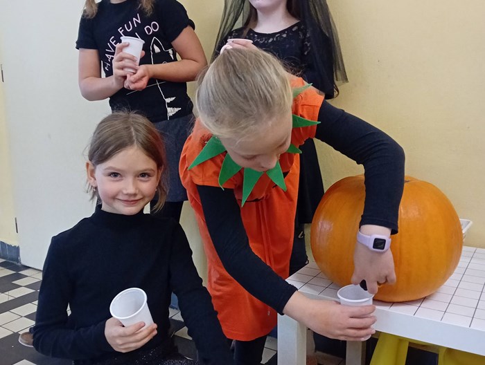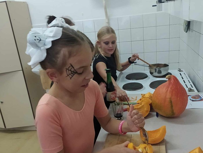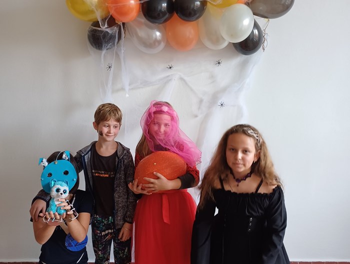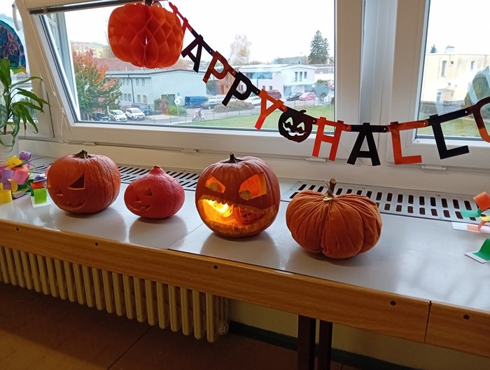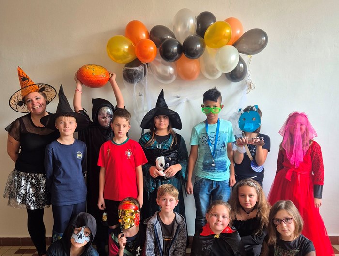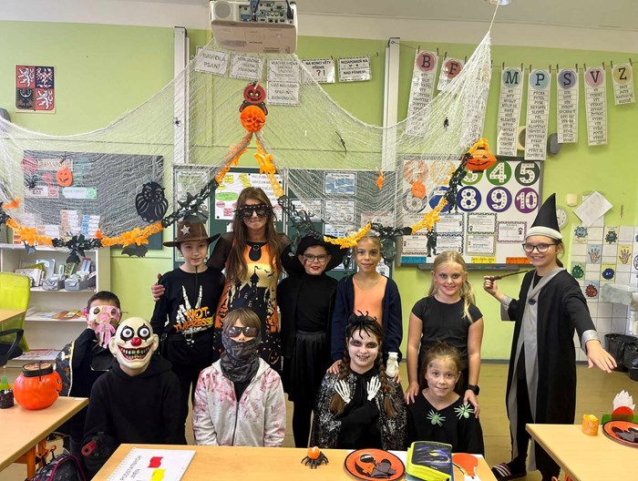 Žáci prvního stupně se po podzimních prázdninách měli rozhodně nač těšit. Všichni si oblékli strašidelné kostýmy a pořádná party ve znamení Halloweenu mohla začít. Dopoledne to bylo opravdu plné nejrůznějších zážitků. Žáci 4. B například navštívili naši cvičnou kuchyň, pokusili se připravit dýňovou polévku a upekli si dýňové hranolky. Ve 2. A si žáci vyrobili pavoučí sítě i s pavoukem, ve třetích třídách se děti něco dozvěděly nejen o Halloweenu, ale i o mexickém svátku Dia de Muertos a Dušičkách. Všichni pak měli možnost se vyfotografovat ve speciálním halloweenském fotokoutku i zkusit prolézt maxipavučinou. Ve všech třídách pak děti vypracovávaly různé pracovní listy, zpívaly strašidelné písničky a malovaly hrady a dýně. Nesměl chybět ani průvod masek zakončený diskotékou v tělocvičně. Na závěr si žáci vybarvili pamětní medaile, které si hrdě odnesli domů.