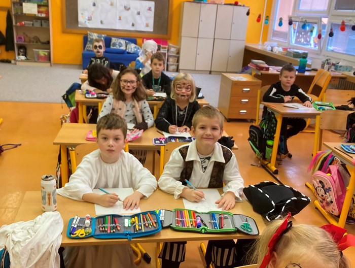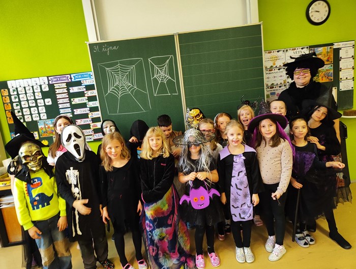 Žáci prvního stupně se po podzimních prázdninách měli rozhodně nač těšit. Všichni si oblékli strašidelné kostýmy a pořádná party ve znamení Halloweenu mohla začít.