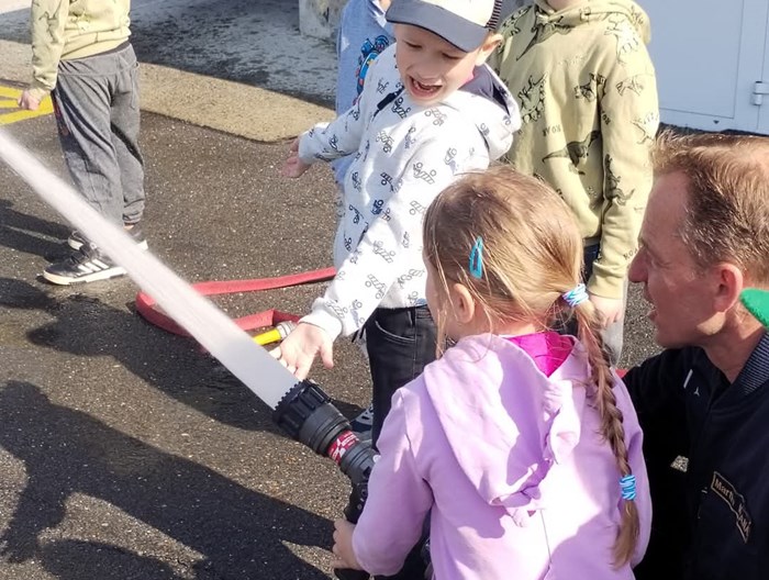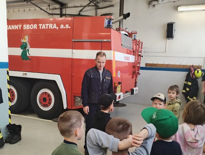 Poté se děti vydaly navštívit hasičskou stanici, která sídlí v areálu továrny Tatra. Seznámily se s hasičskou technikou a s vozy určenými na záchranu lidí. Děti byly nadšené, když si mohly vyzkoušet stříkací hadice s vodou a projet se v hasičském autě.