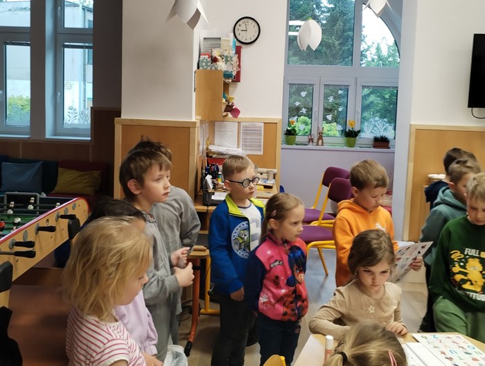 V květnu se naše přípravná třída vydala do Příbora na zajímavou návštěvu do jiné přípravné třídy. Bylo to poprvé, co jsme navštívili děti ve stejné věkové kategorii. Byli jsme zvědaví, které aktivity a jaké prostředí nás čekají. Byli jsme trochu nervózní, ale cesta vlakem nás trochu uklidnila.
