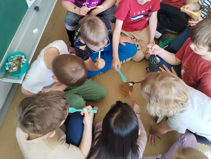 Povídání pro děti z přípravné třídy si na světový den včel připravil jejich spolužák Štěpán i s ochutnávkou medu.