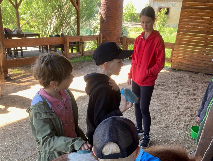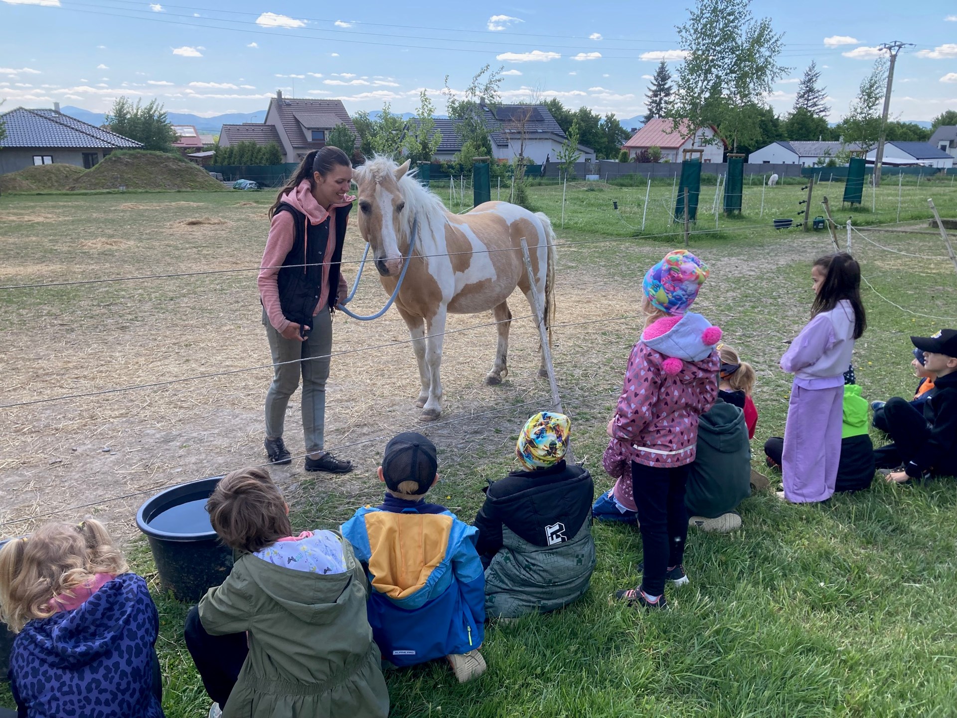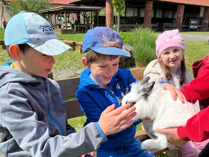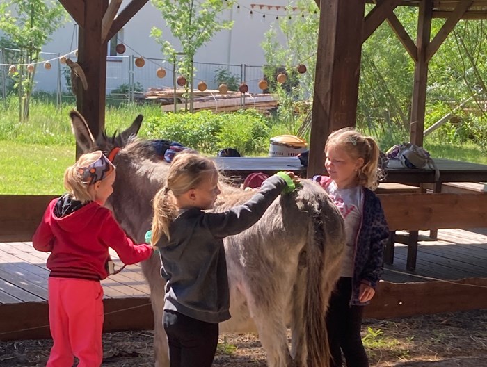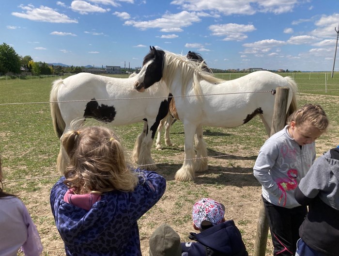 Děti měly možnost vyzkoušet si krmení oveček, hřebelcování poníka a oslíka, nakoukly do indiánského týpí, hladily si králíčky, kočku i pejska, proběhly se koňským parkurem a obdivovaly majestátní stádo koní. Průvodkyně dětem předaly spoustu informací o zvířátkách a téměř nestíhaly odpovídat na hromady všetečných otázek. Rozzářené oči dětí byly důkazem toho, že výlet se opravdu povedl!