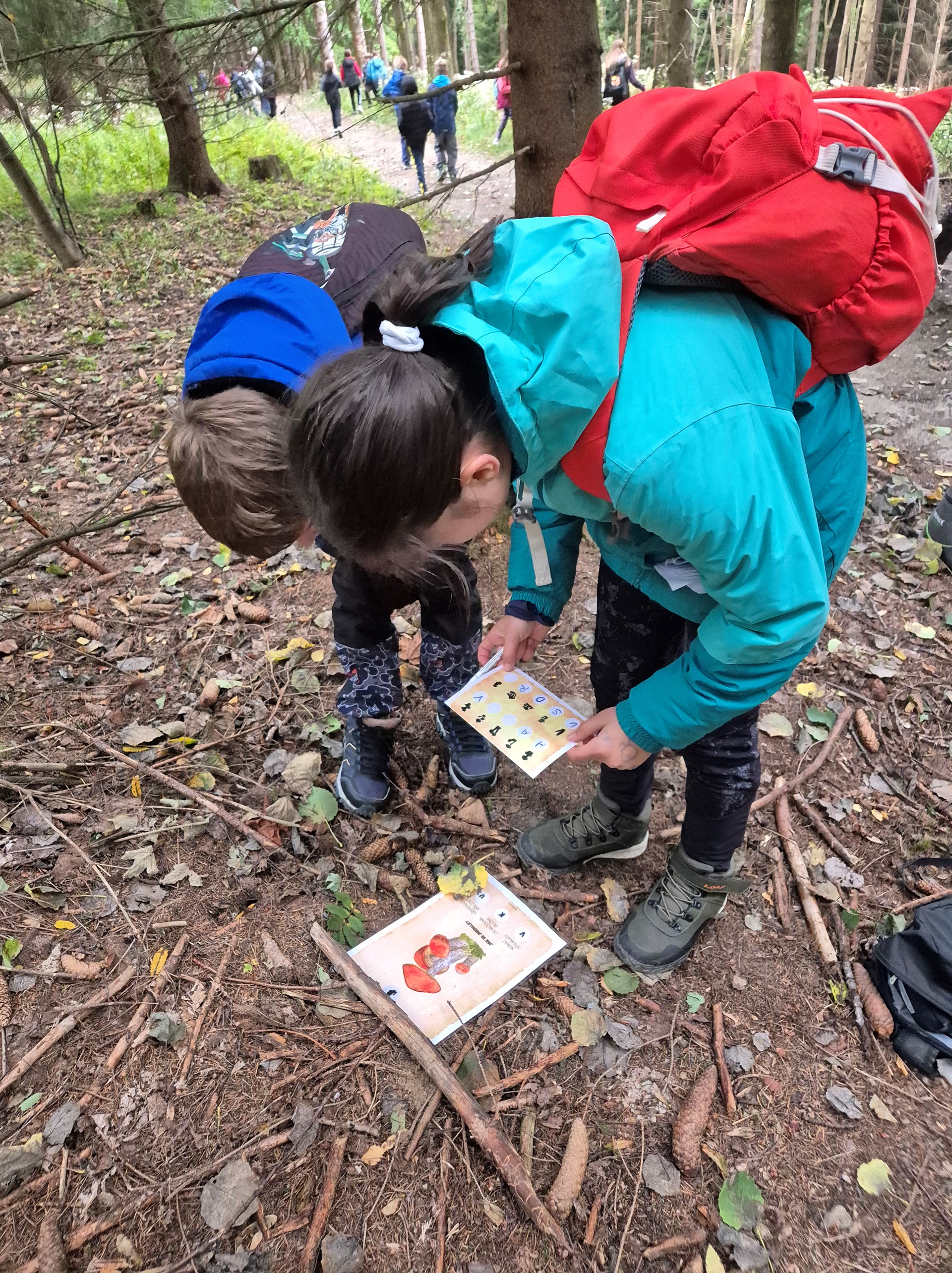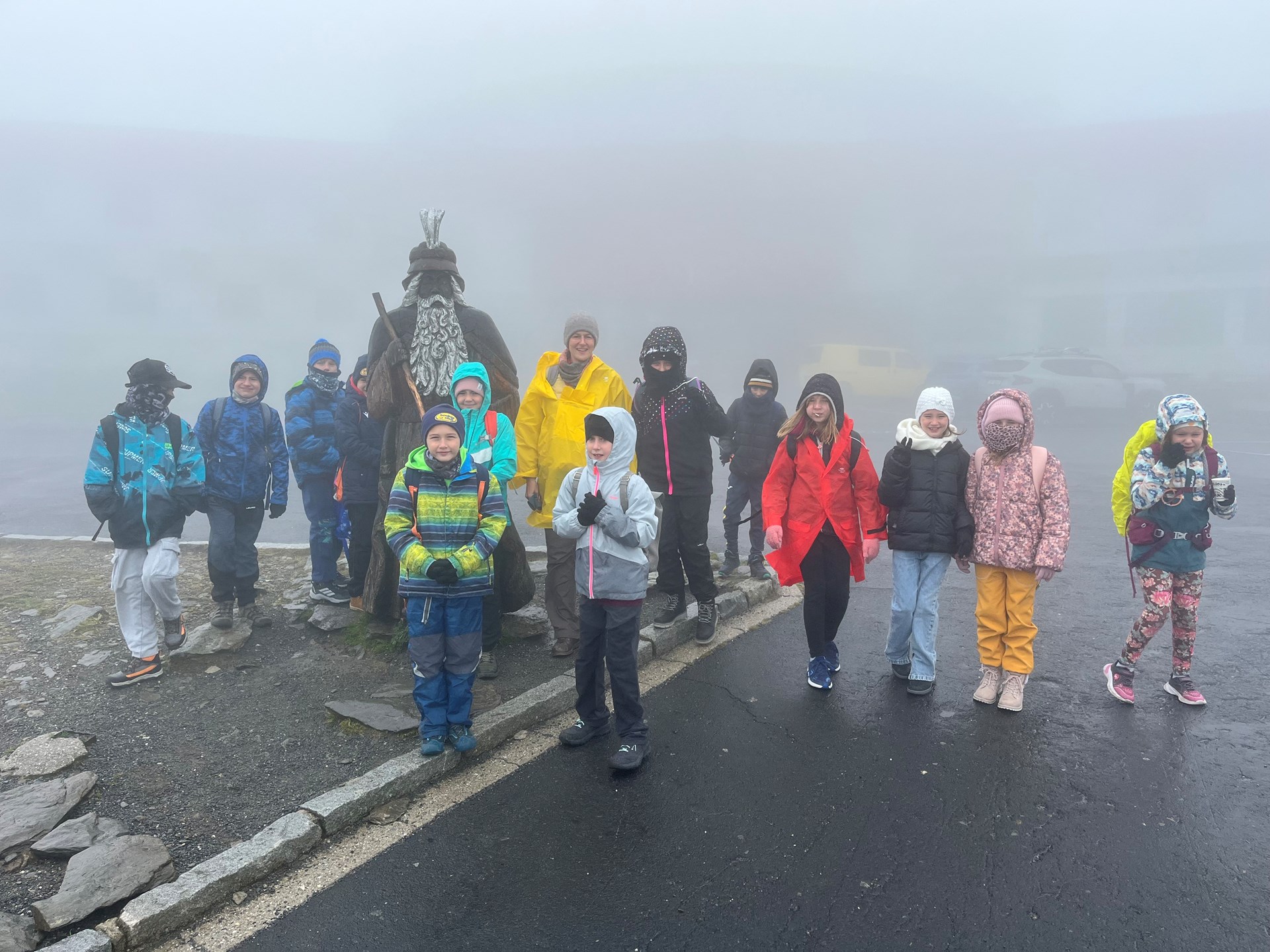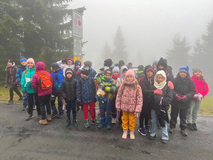 Druhý den nás čekala výzva – výšlap na Praděd. Vyjeli jsme autobusem na Ovčárnu a odtud jsme vystoupali až na samotný vrchol nejvyšší hory Jeseníků. Tam jsme se ohřáli, posilnili, řekli si pár zajímavostí o Pradědu a vyrazili lesem zpátky až do hotelu po svých. Po cestě jsme hledali turistické značky, povídali si o houbách, lišejnících a stromech, které jsme cestou potkávali. Cesta zpátky byla náročná a deštivá, ale děti ji skvěle zvládly. Později žáci napsali vzkaz horám – přání, poděkování nebo slib, jak budou přírodě pomáhat. Vznikly nápadité a originální texty, které dokazují, že dětem na přírodě skutečně záleží. Večerní program byl zaměřený, mimo jiné, na třídění odpadu, který bohužel můžeme najít také v přírodě.