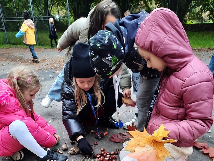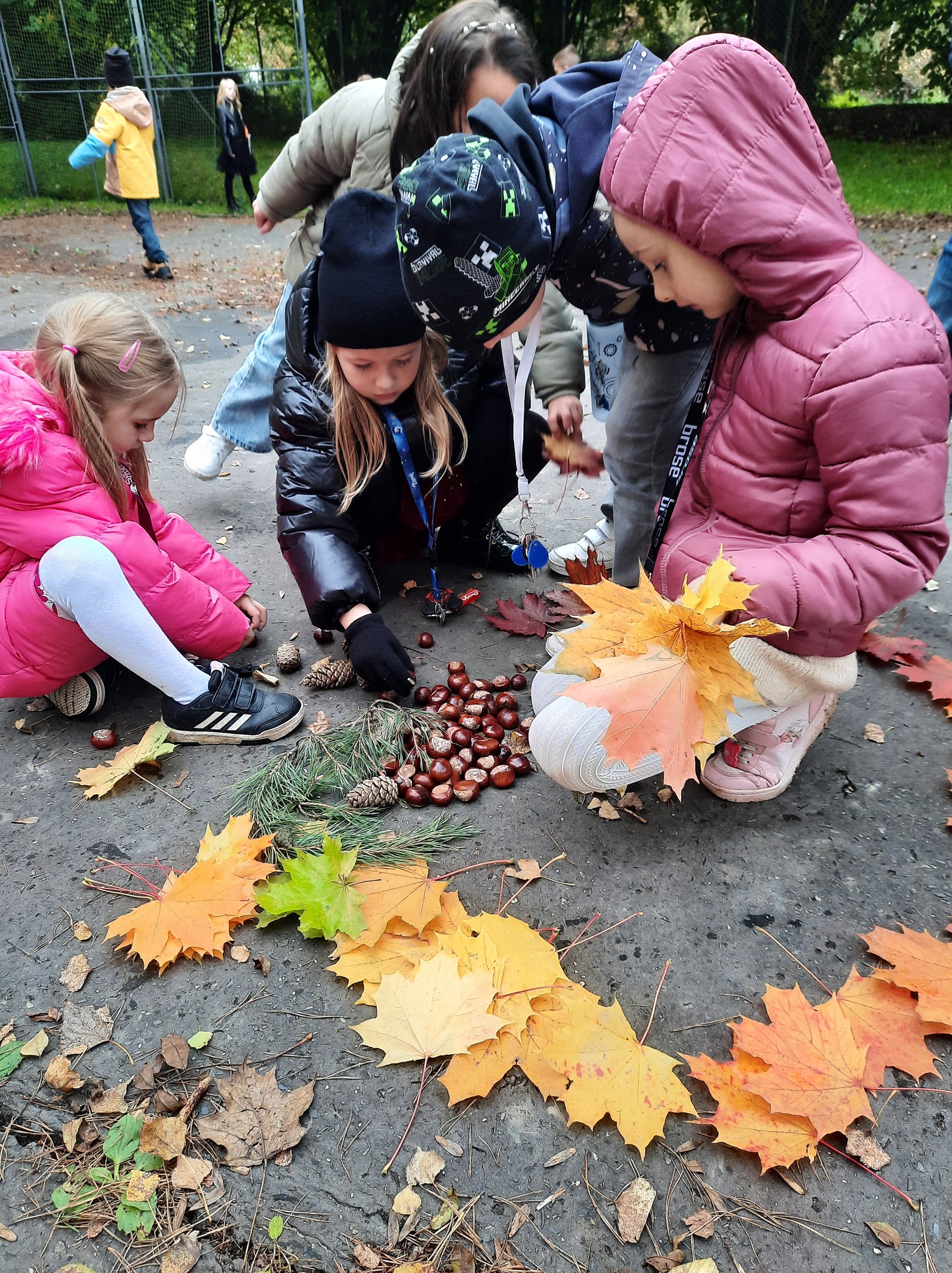 Příroda na podzim hraje všemi barvami a to je ideální příležitost zjistit, jak to venku v tomto ročním období vypadá. Žáci z 1. C využili příjemné říjnové dopoledne a v rámci výuky prvouky vyrazili prozkoumat okolí své školy. Zkoumali téměř všemi smysly. Zrakem vnímali barevnou krásu listů, pátrali po spadlých kaštanech a ti pozornější objevili i ptačí hnízdo vysoko ve větvích. Šustění listí pod nohama zase neuniklo jejich sluchu. Ruce se předvedly při tvorbě podzimní mandaly a při snaze přejít velkou větev si žáci ověřili i svou stabilitu.
