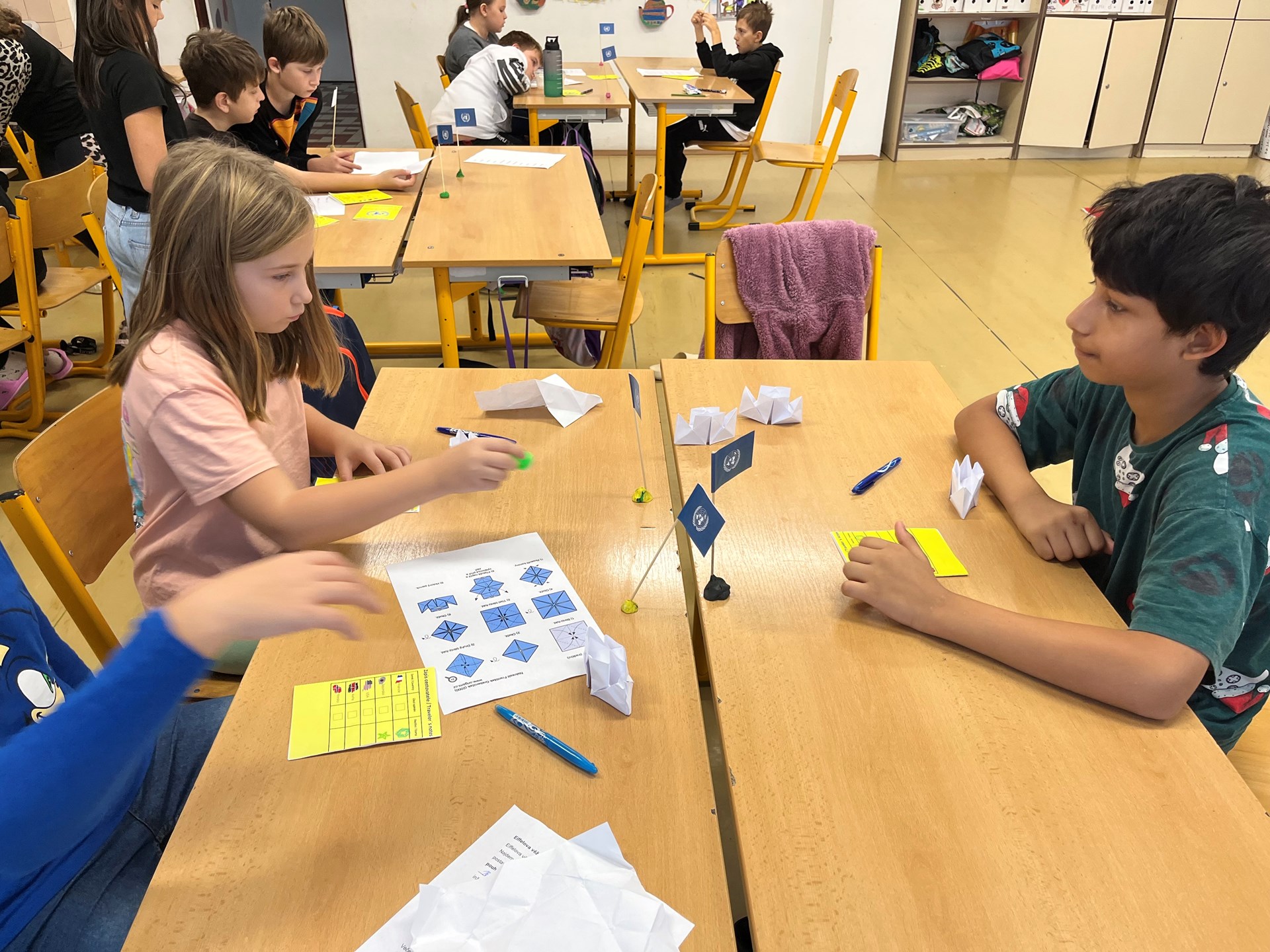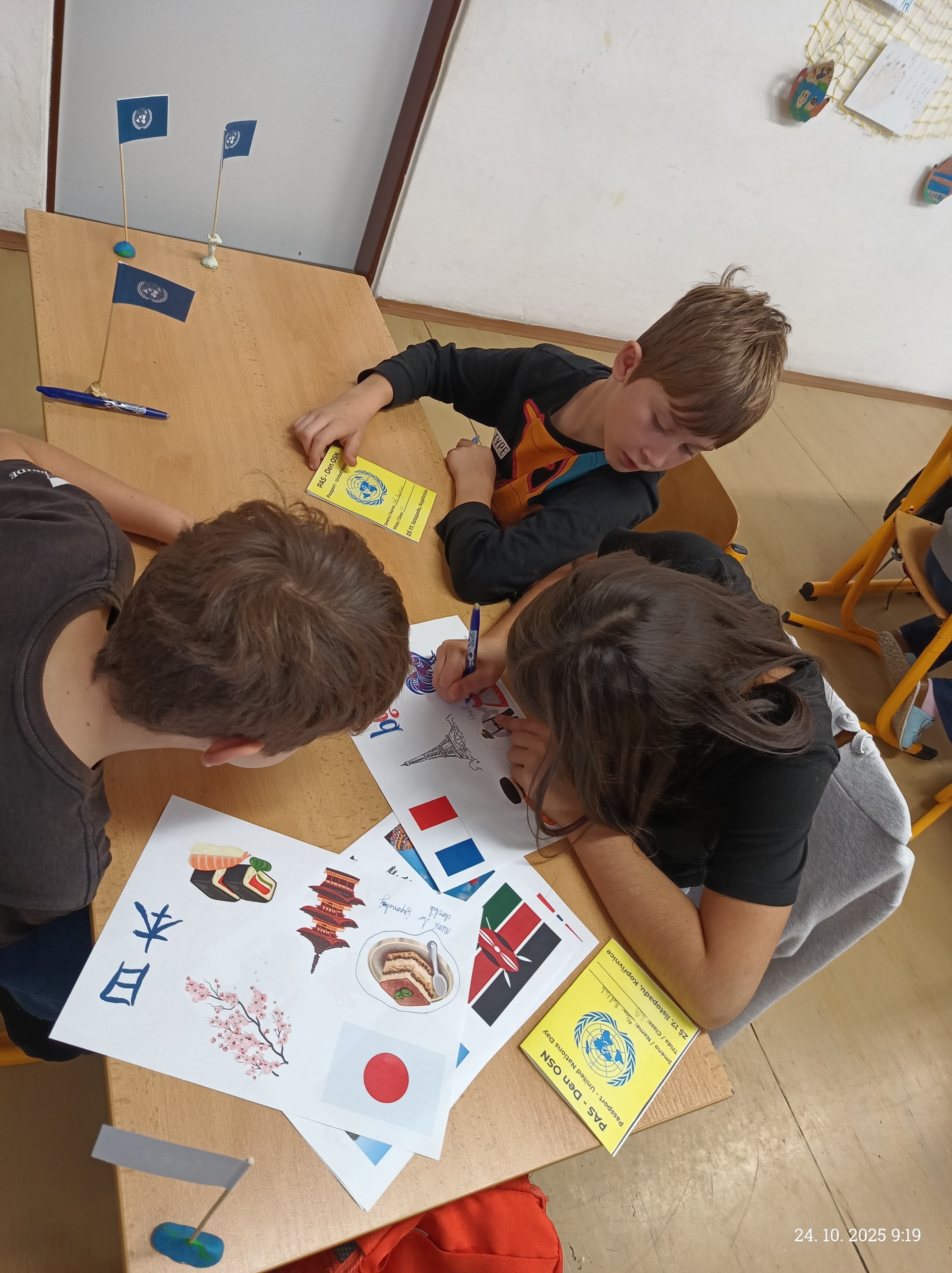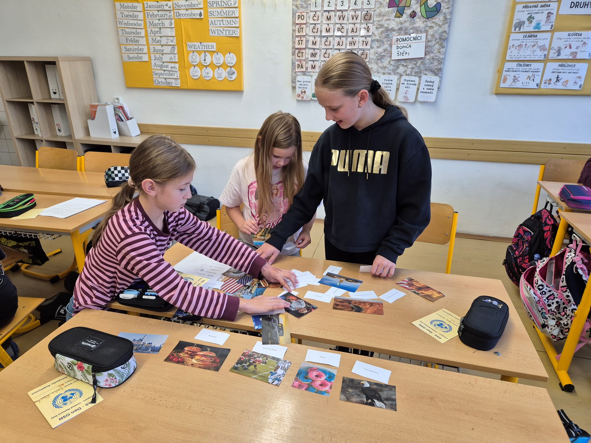 V pátek 24. 10., v den 80. výročí vzniku OSN, proběhl ve třídách 4. B a 4. C projektový den věnovaný Dni OSN. S žáky jsme si nejprve společně povídali o tom, co je Organizace spojených národů, kde sídlí, které státy stály u jejího vzniku a jakou roli hraje v rámci OSN Česká republika.