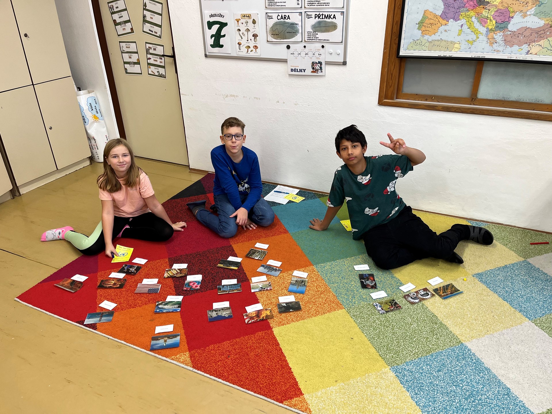 Následně se děti rozdělily do týmů a zahájily den aktivitou „Černá ovce“, při které podle obrázků hádaly, o který stát jde. Jeden obrázek - černá ovce - mezi ostatní nepatřil. Žáci museli kritickým myšlením přijít na to, který je to obrázek a proč mezi ostatní nepatří. Poté se žáci vydali na „cestu kolem světa“ a postupně plnili úkoly na pěti tematických stanovištích: