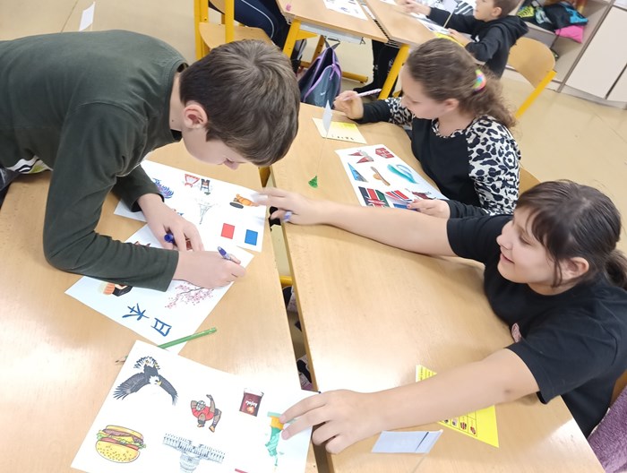Následně se děti rozdělily do týmů a zahájily den aktivitou „Černá ovce“, při které podle obrázků hádaly, o který stát jde. Jeden obrázek - černá ovce - mezi ostatní nepatřil. Žáci museli kritickým myšlením přijít na to, který je to obrázek a proč mezi ostatní nepatří. Poté se žáci vydali na „cestu kolem světa“ a postupně plnili úkoly na pěti tematických stanovištích: