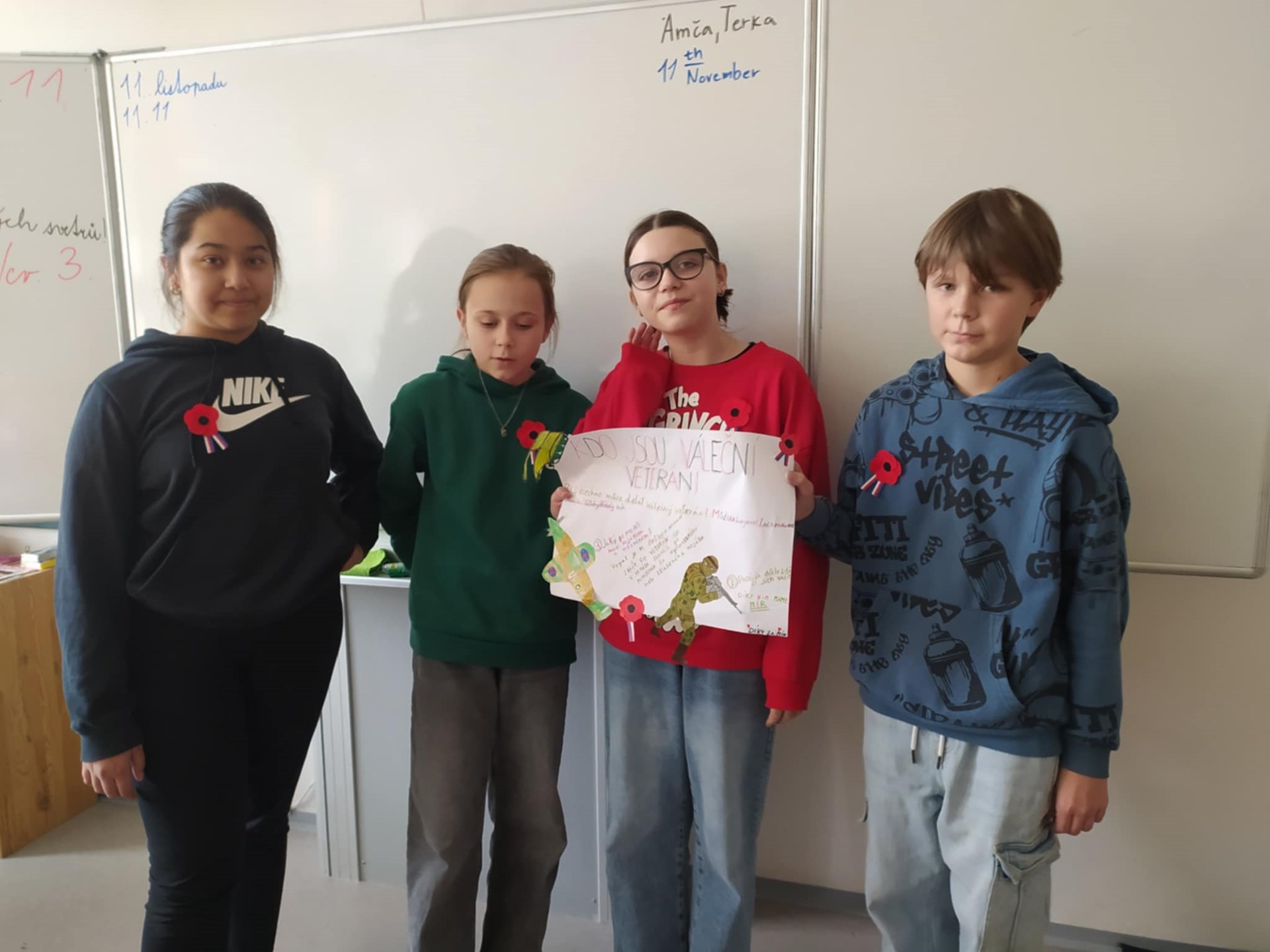 Dne 11. listopadu si žáci 5. B připomněli prostřednictvím projektového vyučování významný den - Den válečných veteránů. Cílem bylo nejen seznámit se s historií a významem tohoto dne, ale také přemýšlet o odvaze, obětavosti a lidskosti v těžkých dobách.
