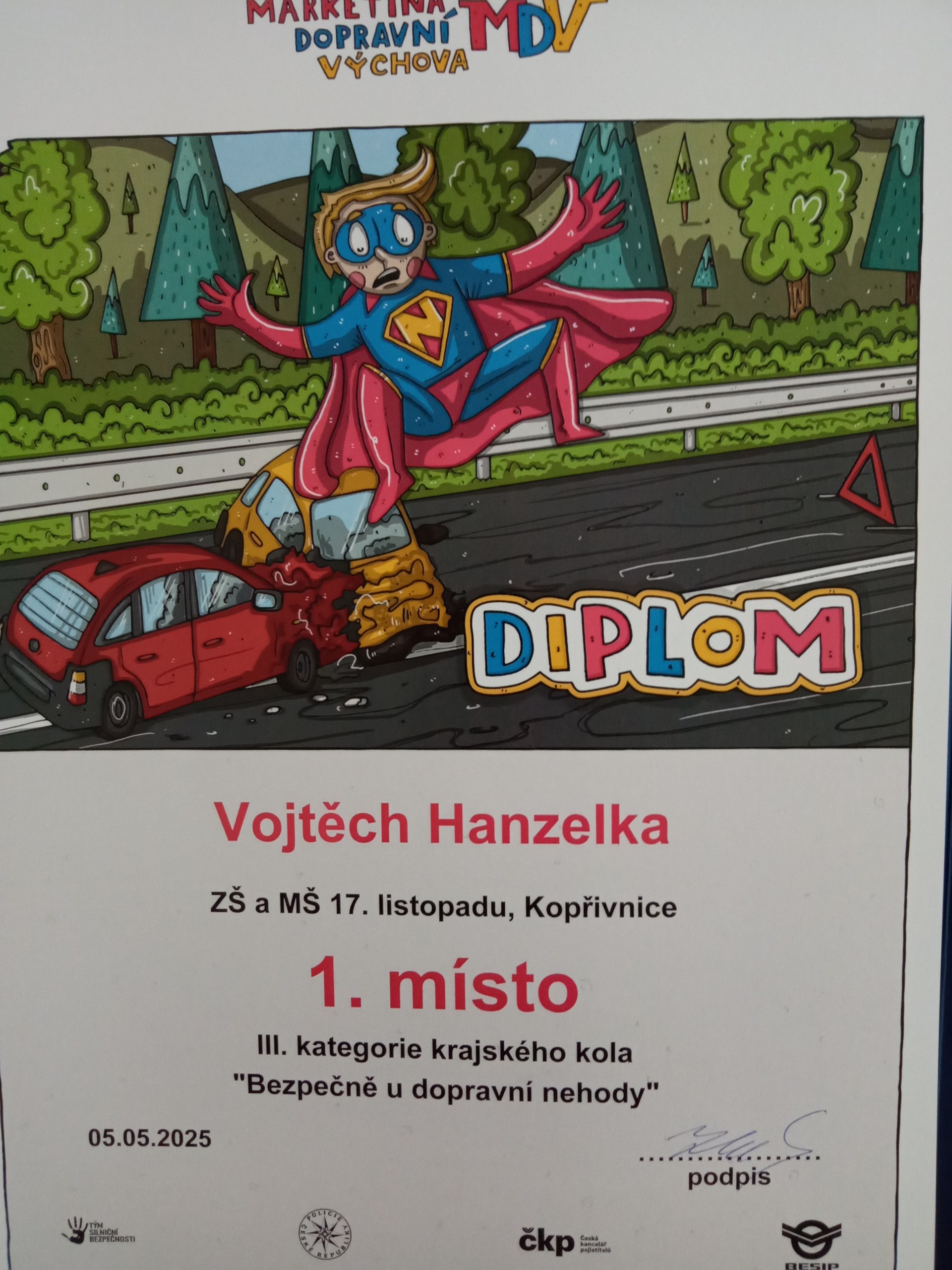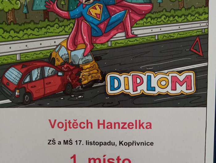 Vojtěch Hanzelka, žák naší školy, získal 1. místo v krajském kole výtvarné soutěže Markétina dopravní výchova.