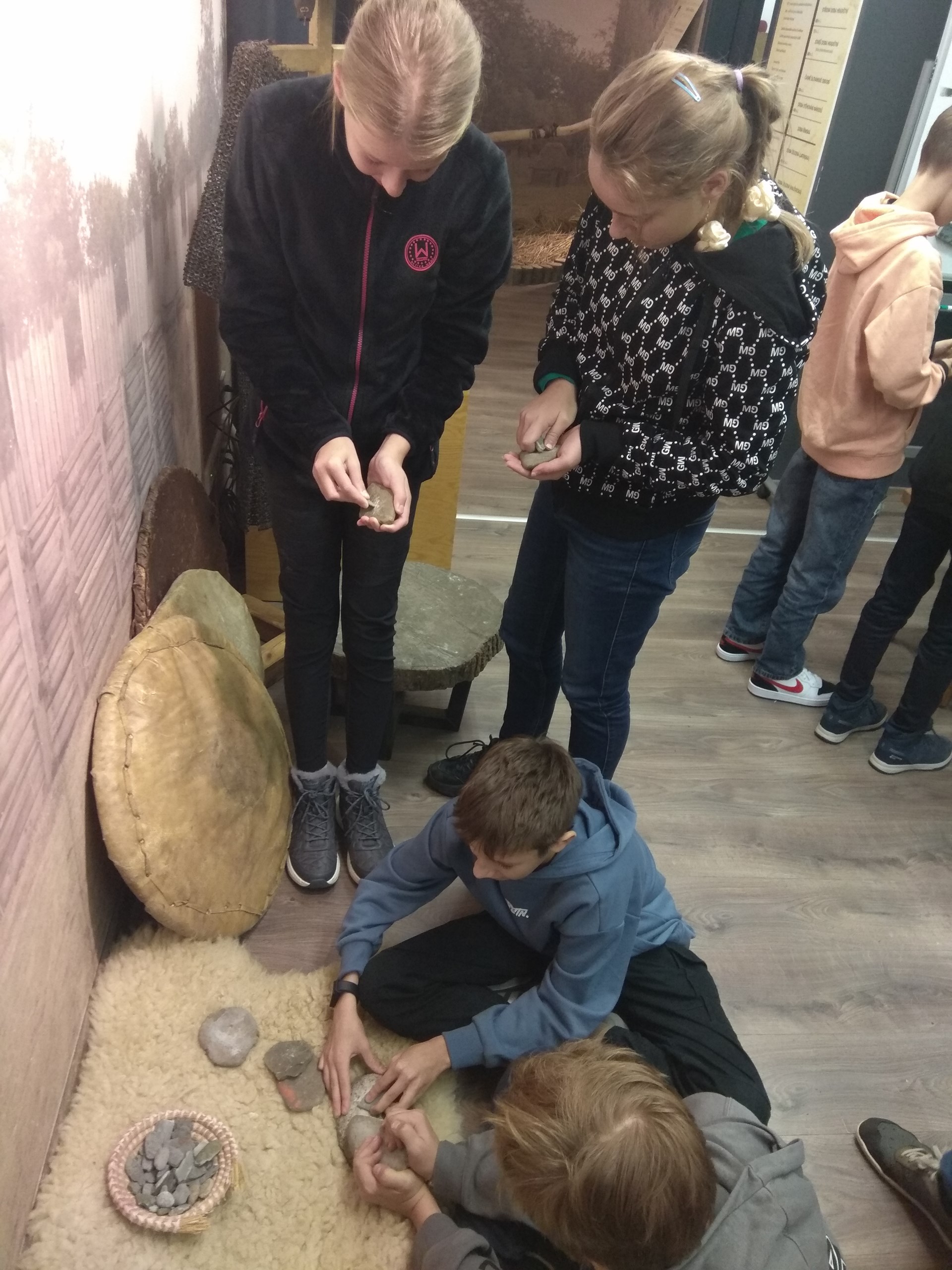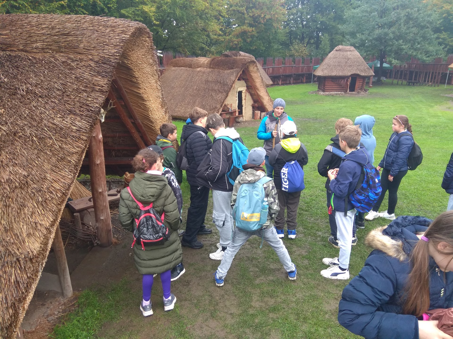 V úterý 7. října se žáci šestých tříd vypravili do Archeoparku v Chotěbuzi prozkoumat nástroje, zbraně i umělecké předměty doby kamenné. Po úvodním představení všech technologických inovací, kterými si postupně člověk usnadňoval život, si žáci některé sami vyzkoušeli. Velkou zručnost prokázali například při použití pravěké vrtačky nebo při rozdělávání ohně, hudební talent při hře na perkusní nástroje. Deštivé počasí nás neodradilo ani od procházky na místní slovanské hradiště s replikami polozemnic, kde si někteří vyzkoušeli také nesnadnou manipulaci s vrhačem oštěpů. Čas nám utekl tak rychle, že se mnohým nechtělo věřit, že nastal čas odjezdu :)