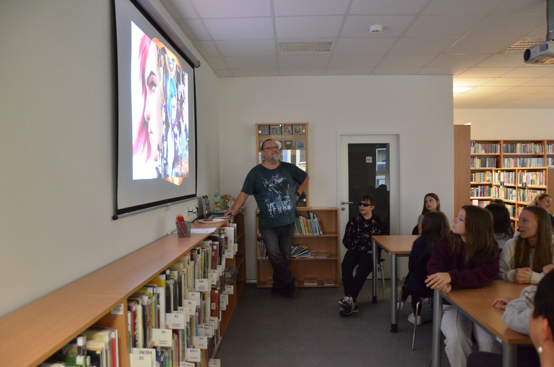 V úterý 7.10. 2025 se žáci 8. a 9. ročníku zúčastnili literárního workshopu s názvem „Průlet fantastickými světy“, který se konal v prostorách Městské knihovny - pobočka Sever.