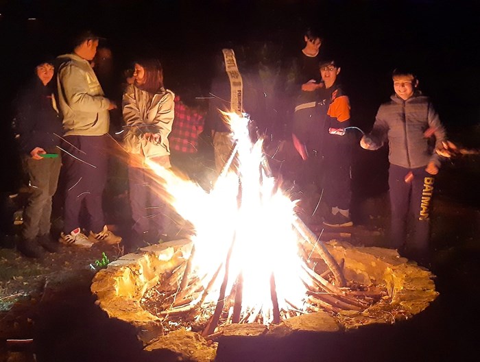 Zatímco třídu 6. A večer čekala strašidelná stezka odvahy noční školou, třída 6. B svůj večer strávila u táborového ohně.