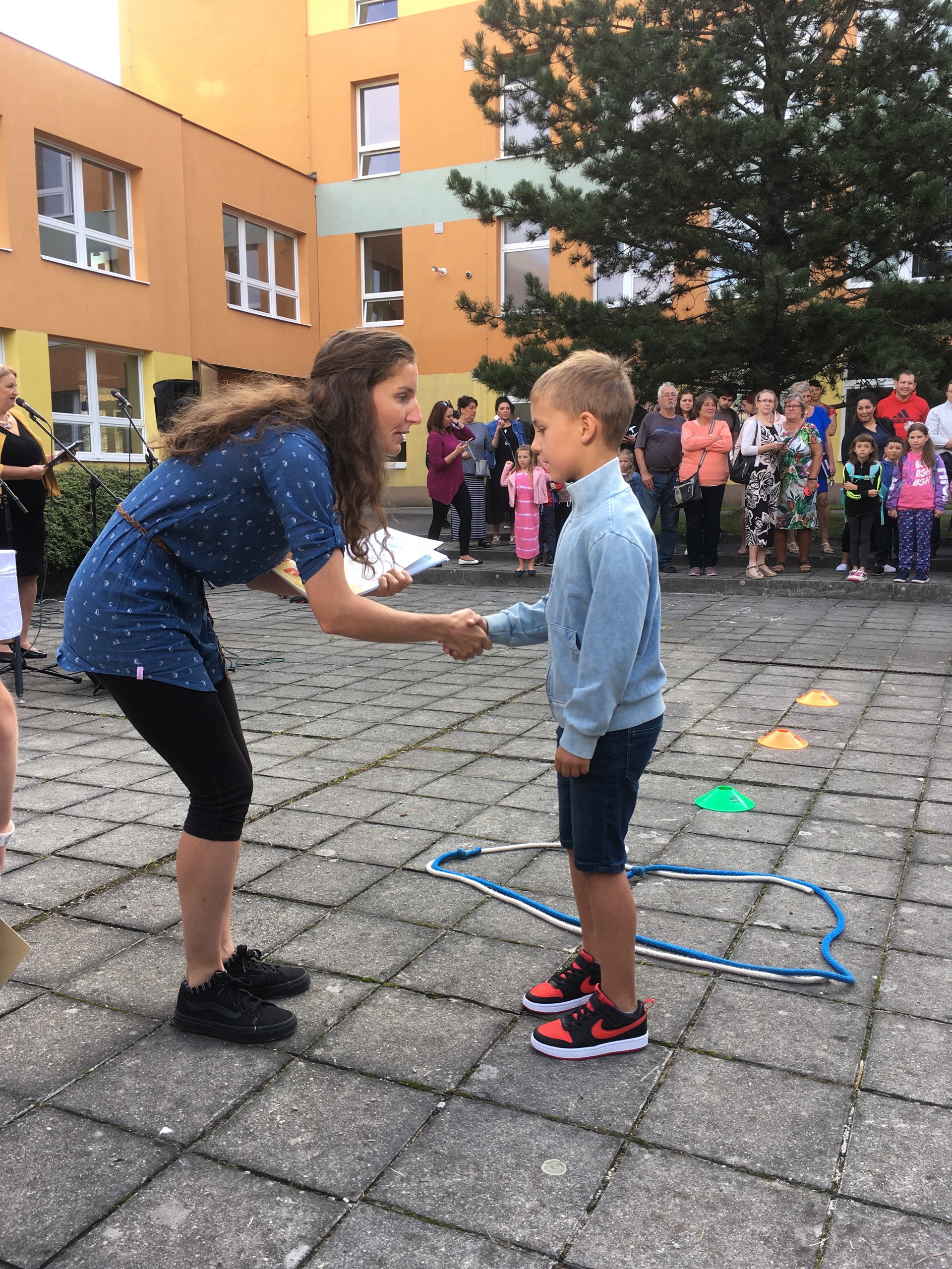 Dne 4. září začal nový školní rok. Společné úvodní setkání všech žáků, učitelů a zejména prvňáčků s jejich doprovodem se uskutečnilo venku v atriu školy. Slavnostní zahájení školního roku uvedla p. ředitelka Havlíková. Všechny přítomné přišla uvítat a pozdravit také p. Lucie Macháčková, tisková mluvčí z MÚ.
