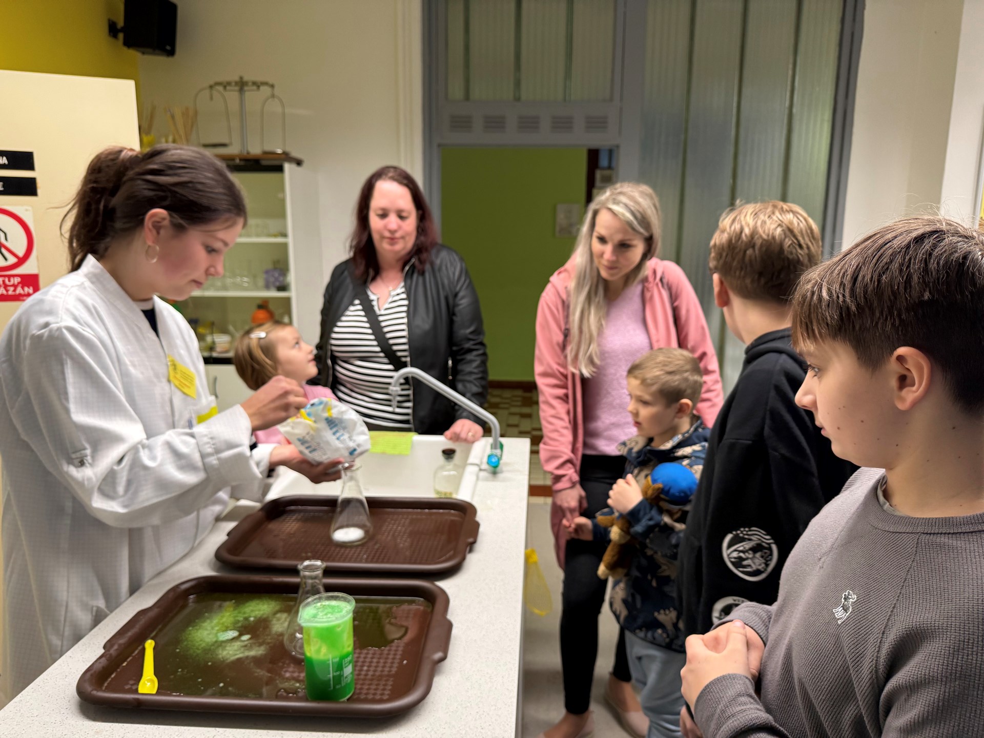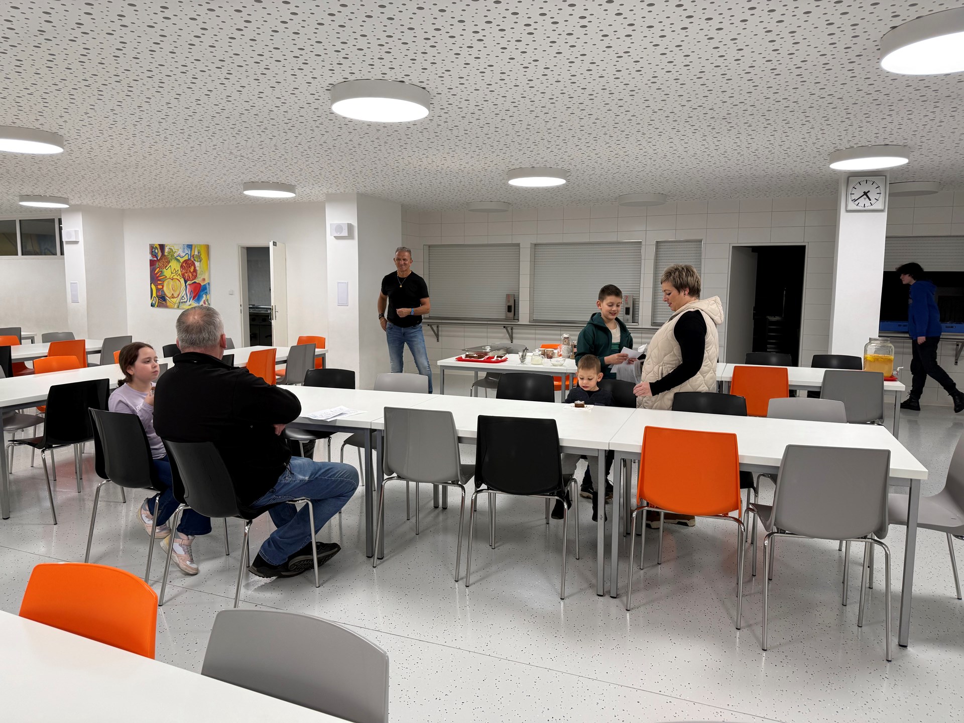 Odpoledne už čekaly na návštěvníky veselé soutěžní úkoly (pro děti) během prohlídky školy, krátké vystoupení školní kapely Kyselé rybičky, ukázky činnosti v nových učebnách Ch, Př, F a Aj, ukázky robotiky a programování včetně prezentace velkého množství robotických a jiných digitálních pomůcek v odborných učebnách. Mnozí návštěvníci využili také nabídku občerstvení ve školní jídelně. Zájemcům byly poskytnuty informace o škole, k zápisu do ZŠ a ke školní zralosti od školního psychologa či speciálního pedagoga.