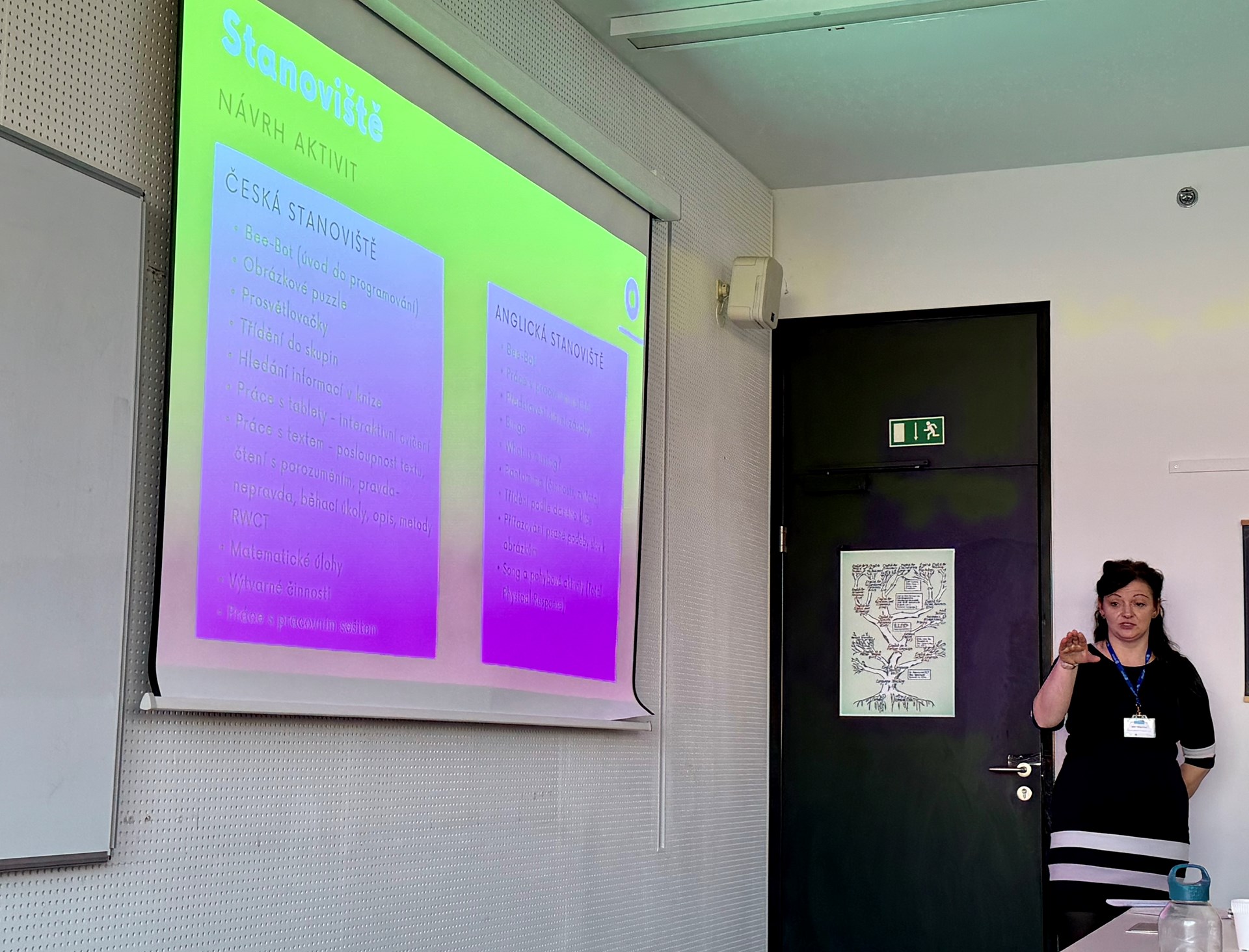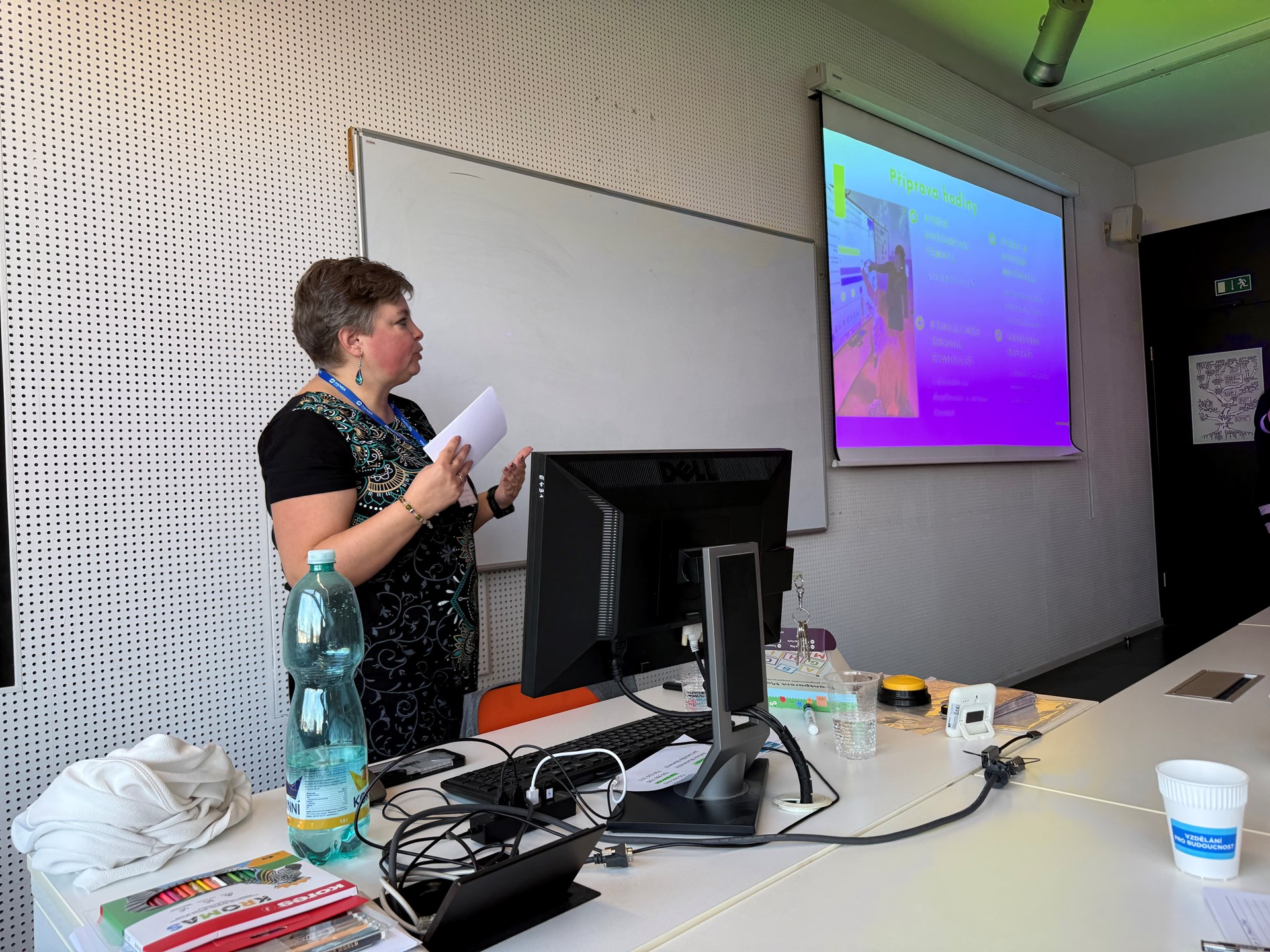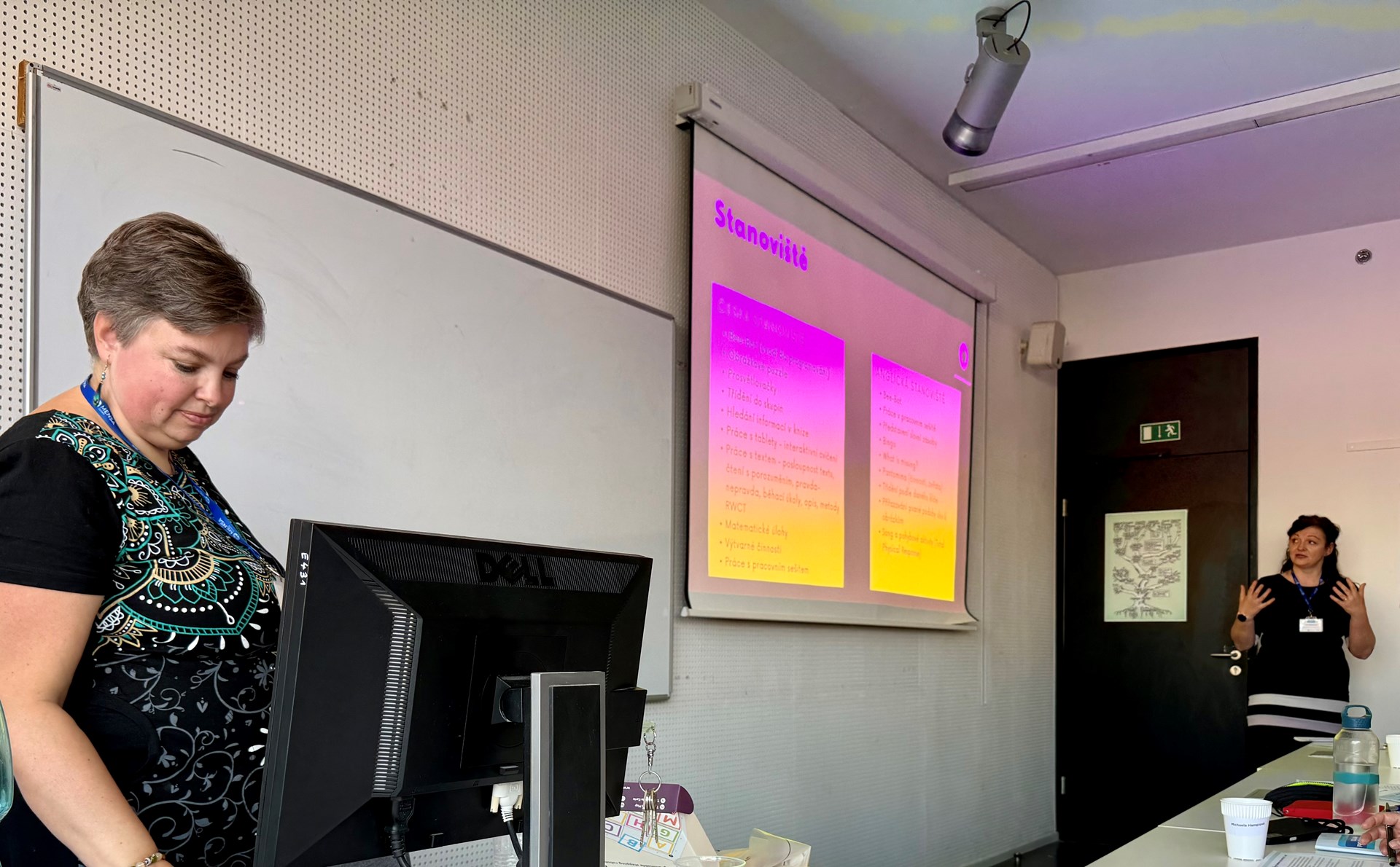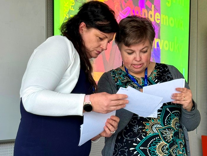 Máme velkou radost, ze mezi desítkami přednášejících byly také dvě paní učitelky naší školy. Paní Mgr. Zuzana Dryjáková a p. Mgr. Jana Kašparová byly organizátory osloveny, aby na této konferenci prezentovaly svůj vlastní nápad - tandemovou výuku v 1. třídě, kterou vedou v předmětu prvouka hned ve dvou jazycích současně. Díky propojení českého a anglického jazyka si žáci rozšiřují jak znalosti z oblasti přírody, tak související slovní zásobu. Celé učení probíhá hravou formou ve skupinkách na stanovištích.