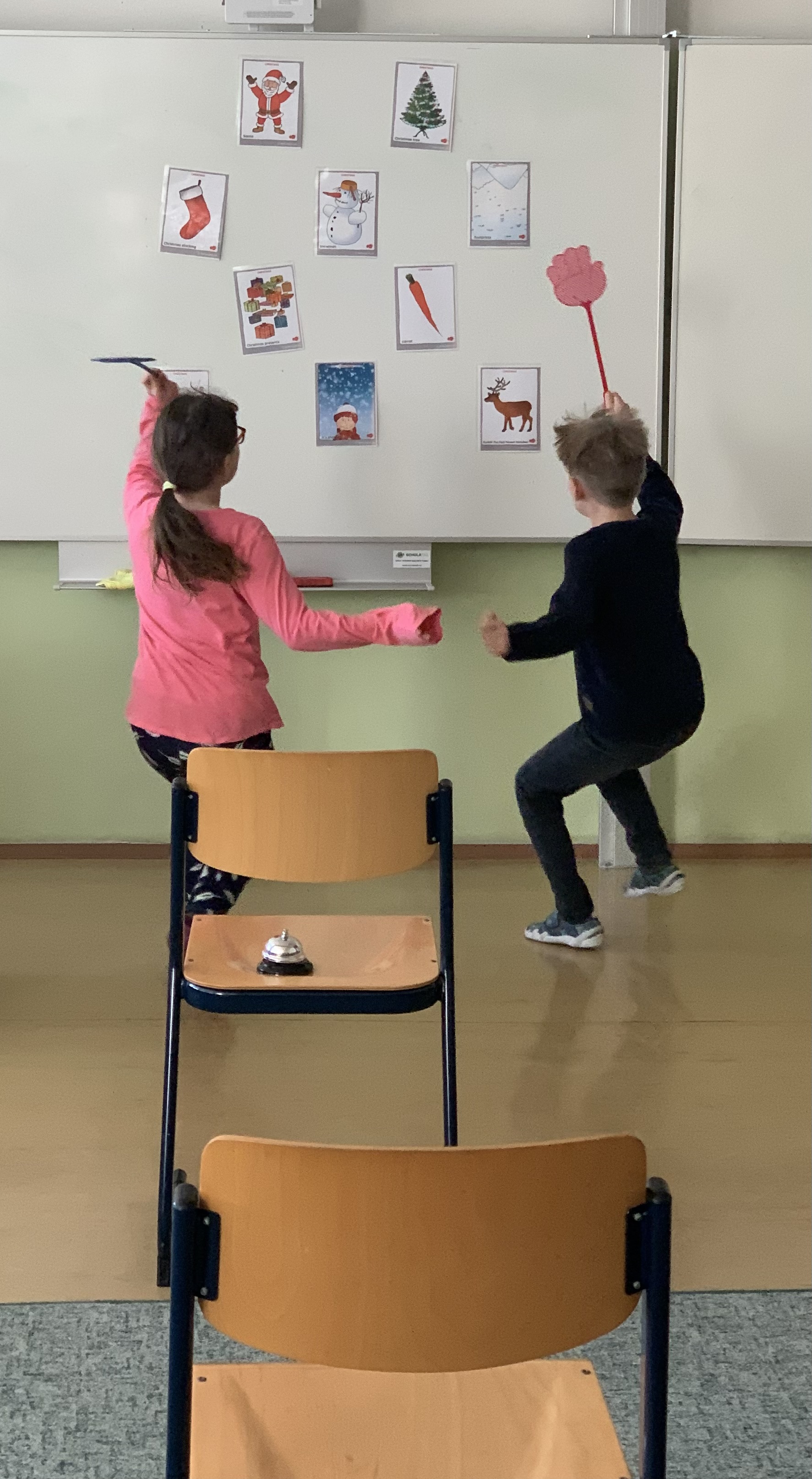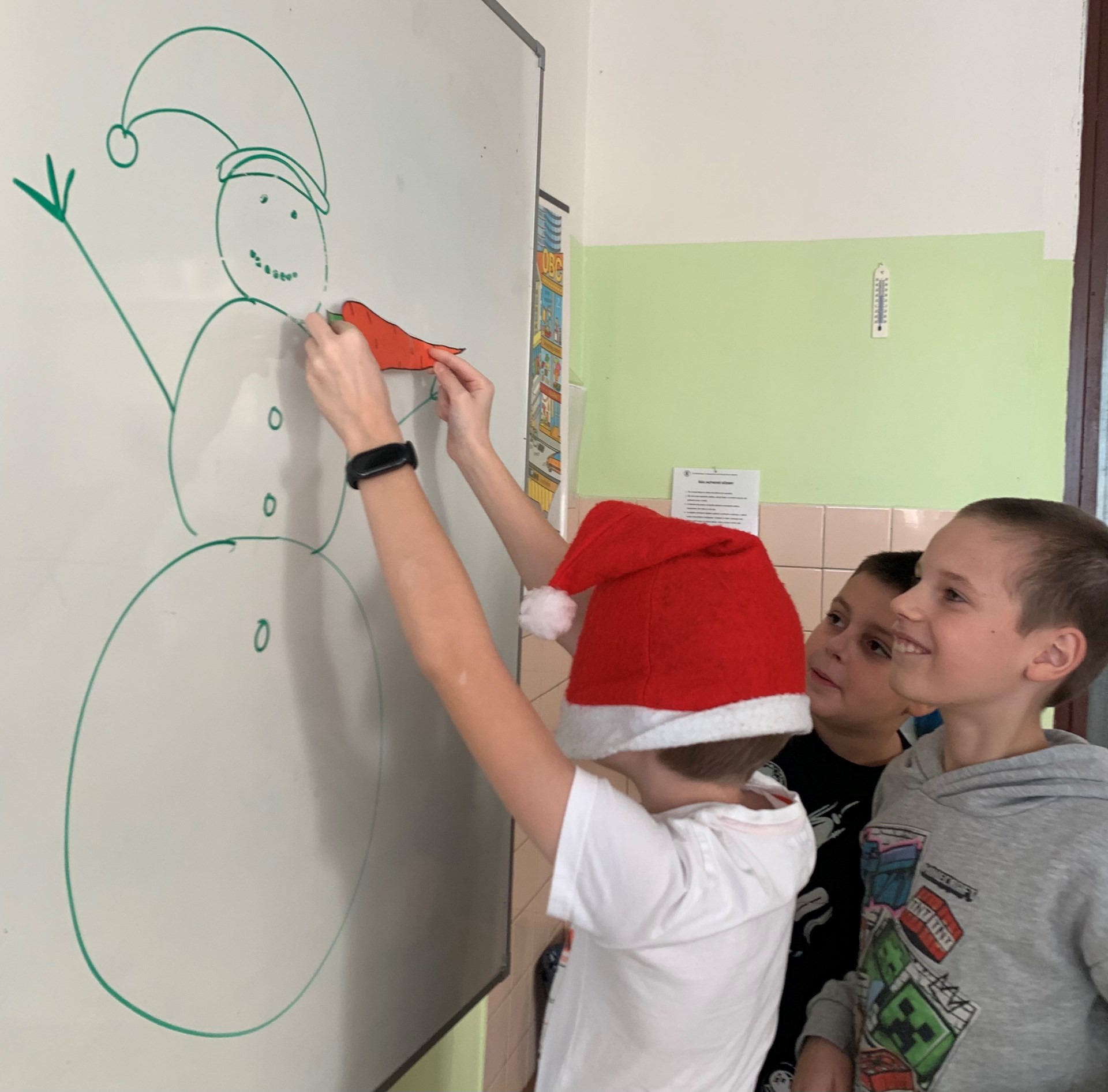Ve třídách Světa vzdělání se učíme se Stevem, Maggie, jejich zábavnými videi a taky se zábavnými aktivitami. Vánoce klepou na dveře, proto nesmí chybět Vánoční lekce se speciálními hrami. Tento týden hrajeme například “Pin the carrot!”. Dokázali byste se zakrytými oči, pouze za pomocí kamarádů a jejich instrukcí “Up! Down! Left! Right! Stop!” nasadit sněhulákovi správně nos? Vypadá to snadno, ale mrkev někdy končí na nečekaných místech.