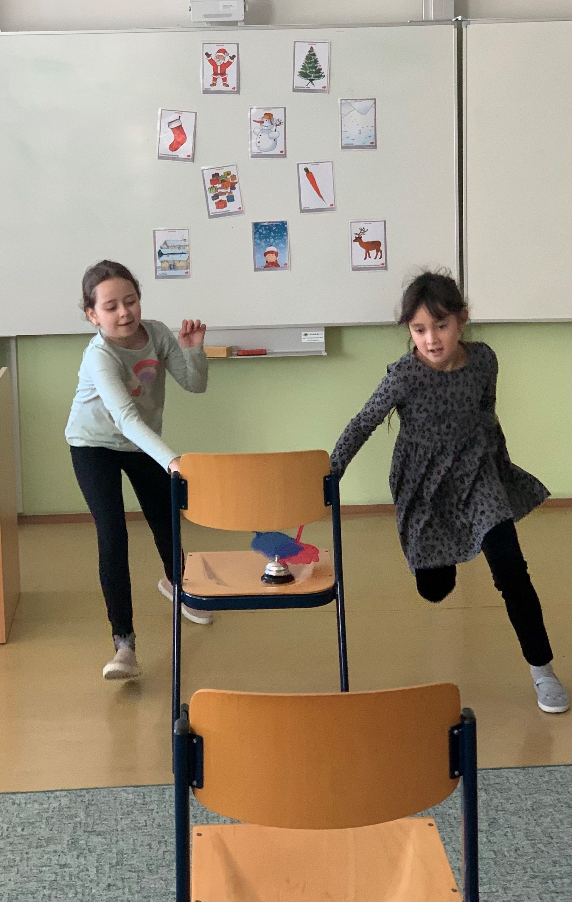 A co teprve závod s plácačkami. Nesmí Vám chybět mrštnost šelmy a postřeh leoparda. Kdo zvládne dříve plácnout na správnou kartičku, zazvonit na zvonek a posadit se na židli? Často týmy fandí tak, že o nás ví celá škola a rozhoduje jen setina sekundy!