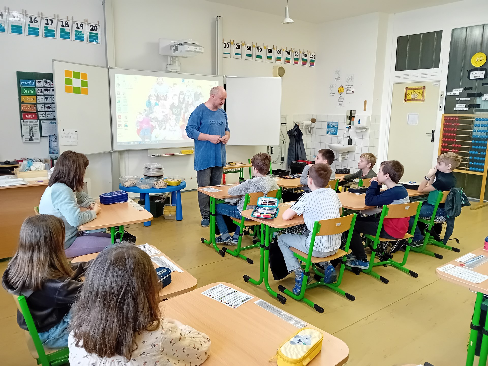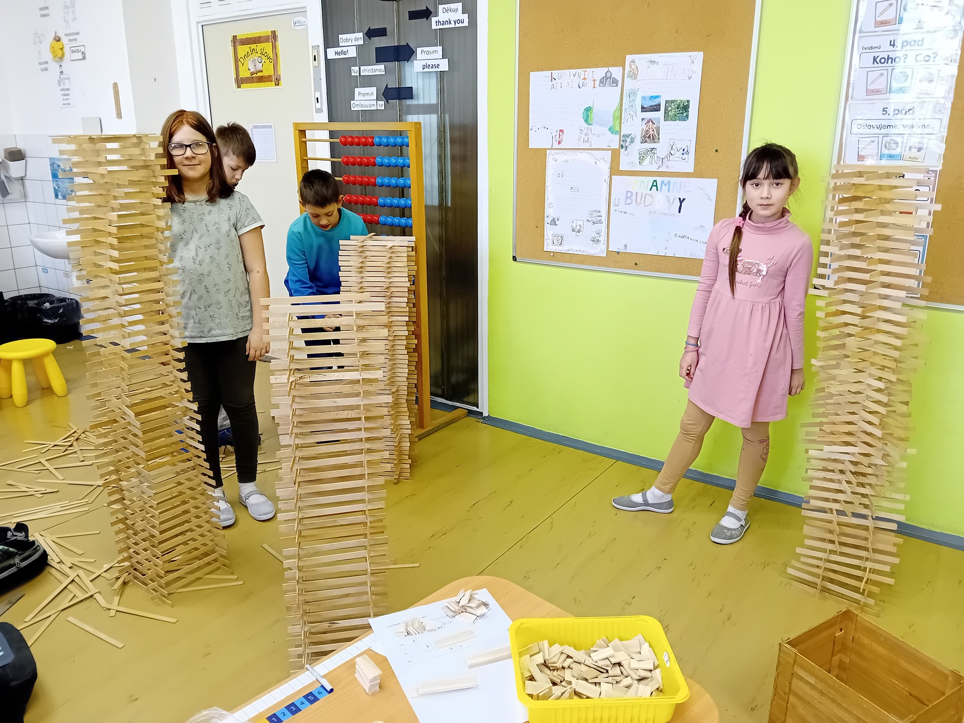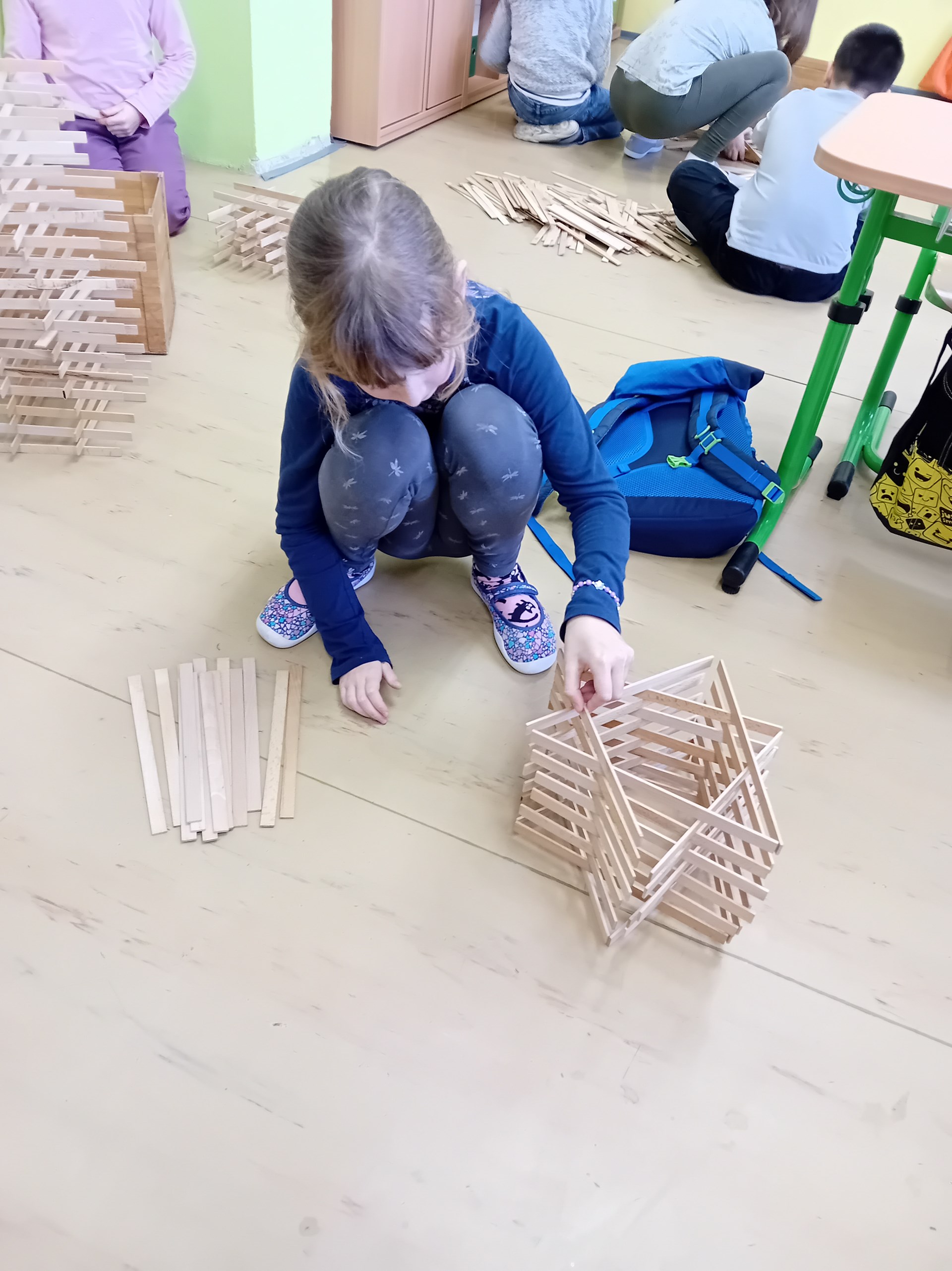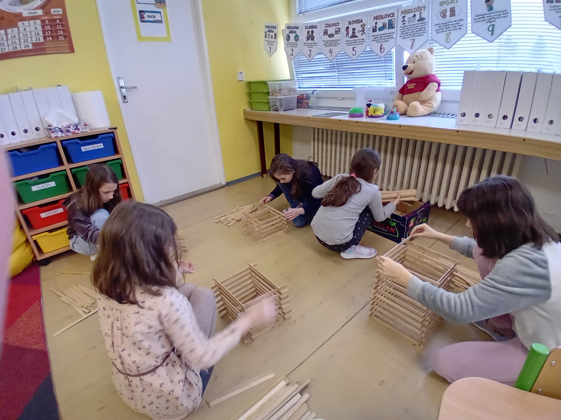 Žáci ze 3. A zažili jedno nevšední páteční dopoledne. Do třídy zavítal pan Samuel Fojtů s krabicemi plnými dřevěných lišt.