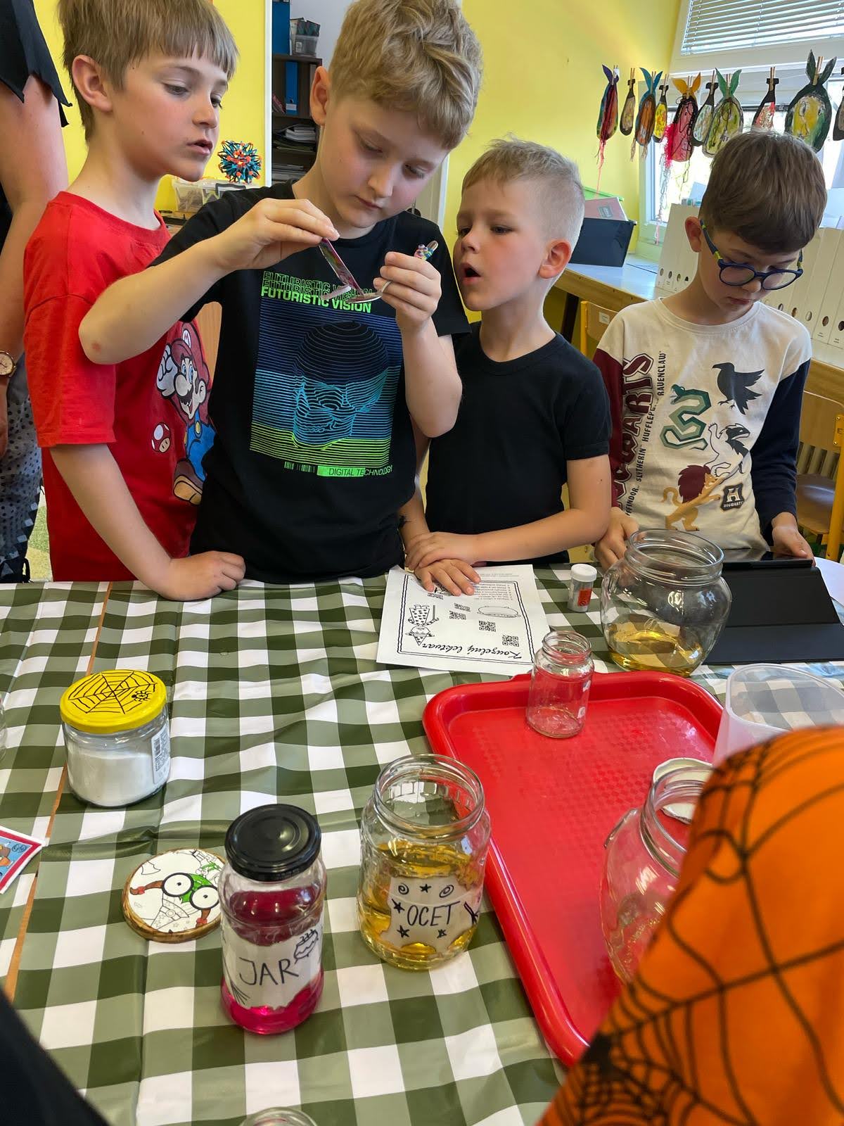 Vrcholem tohoto velmi zábavného dopoledne bylo tvoření lektvaru! Každá skupina dostala pracovní list s QR kódy, ve kterých byly ukryty ingredience pro jeho výrobu.