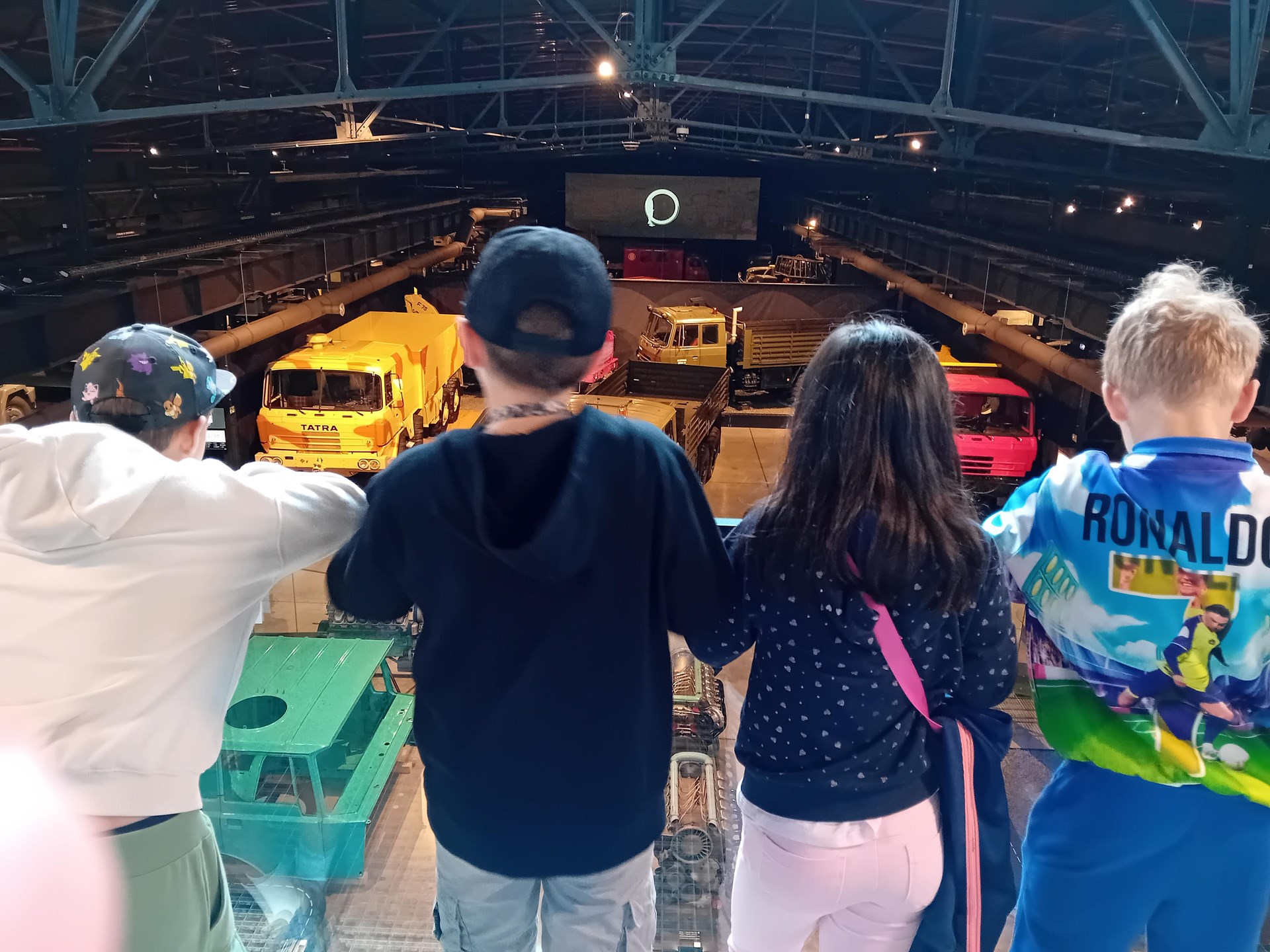 V muzeu nás přivítala milá paní průvodkyně, která dětem představila vystavené exponáty i počítačově zpracované modely již neexistujících automobilů. Pomocí tabletu a QR kódů jsme mohli nahlédnout do interiérů některých z nich. Viděli jsme historické i moderní nákladní vozy a cisterny, které sloužily k různým účelům.