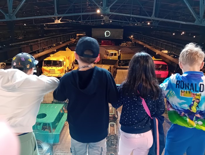 V úterý 10. 6. naše třída využila dárkový poukaz z loňského závěru 1. třídy na komentovanou prohlídku v Muzeu nákladních automobilů Tatra. Hned ráno jsme se sešli u školy a vyrazili pěšky na místo konání exkurze.