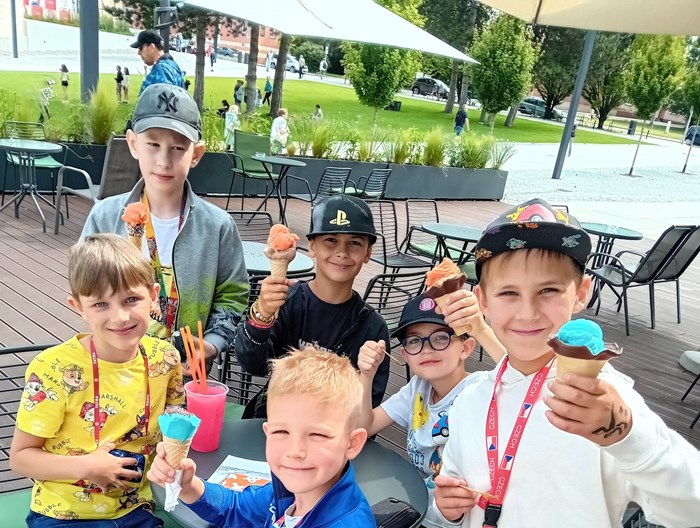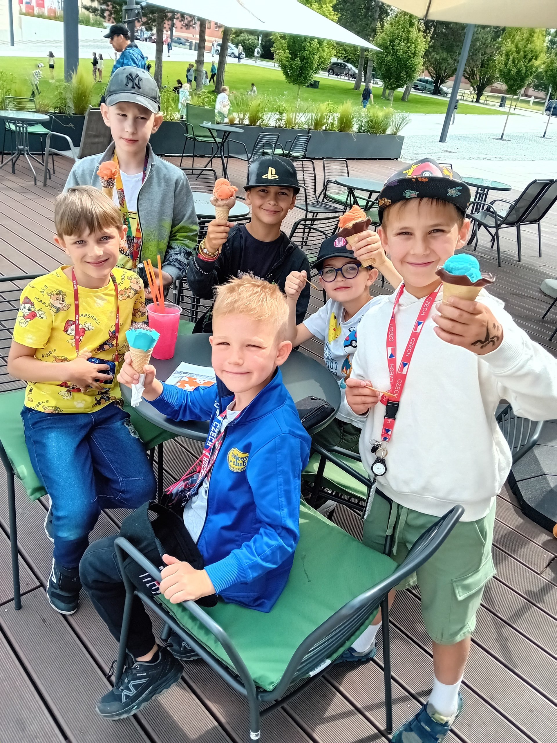 Po prohlídce jsme se s dětmi vydali zpátky do školy, a abychom zakončili náš malý výlet sladkou tečkou, zastavili jsme se na náměstí, kde se děti občerstvily zmrzlinou.