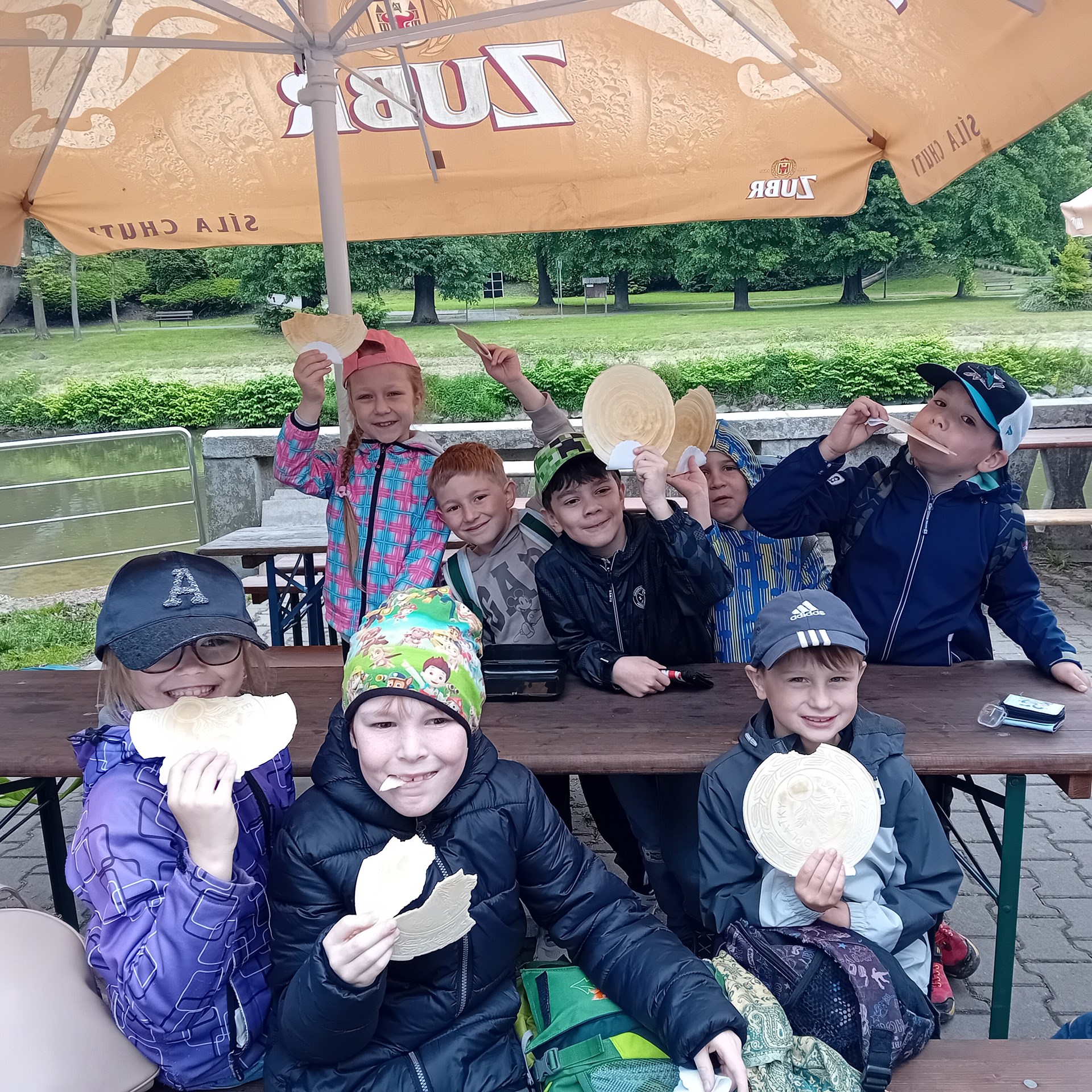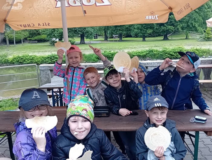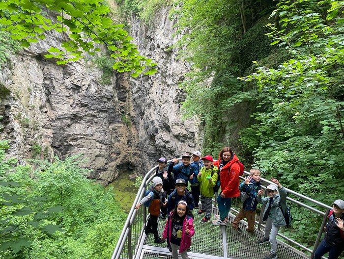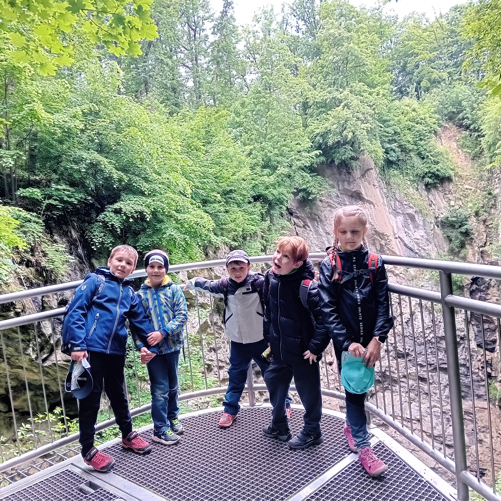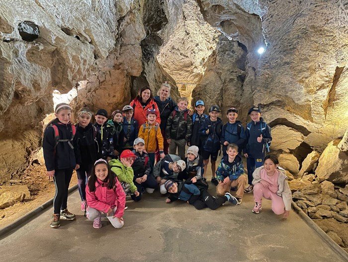Poslední květnový pátek navštívili světový unikát uprostřed lázní Teplice nad Bečvou - Zbrašovské aragonitové jeskyně. Po sladké tečce v podobě pravých teplých lázeňských oplatek, nákupech nezbytných suvenýrů a doplnění turistického razítka do deníčku se žáci také vydali k Hranické propasti - nejhlubší zatopené propasti na světě přezdívané Tajemná dáma. Hezké počasí žákům umožnilo také posvačit na nedaleké louce a zažít volnost v pohybu s kamarády před návratem na víkend domů.