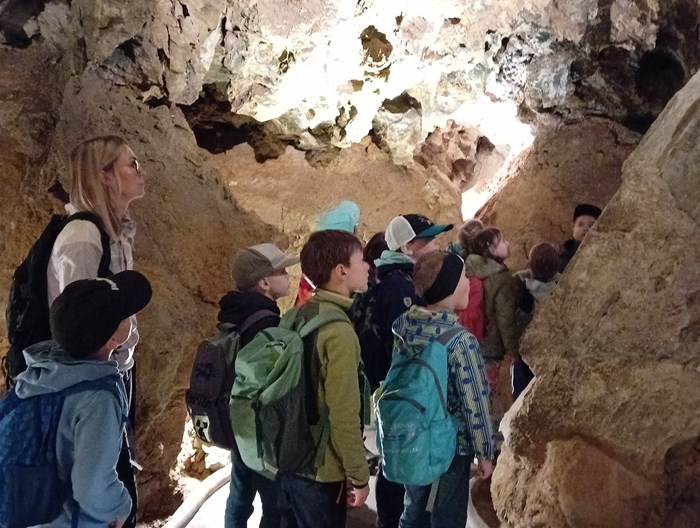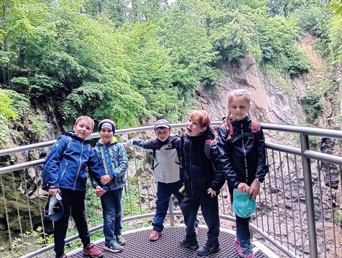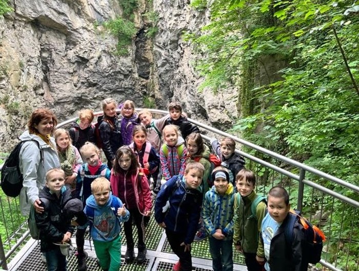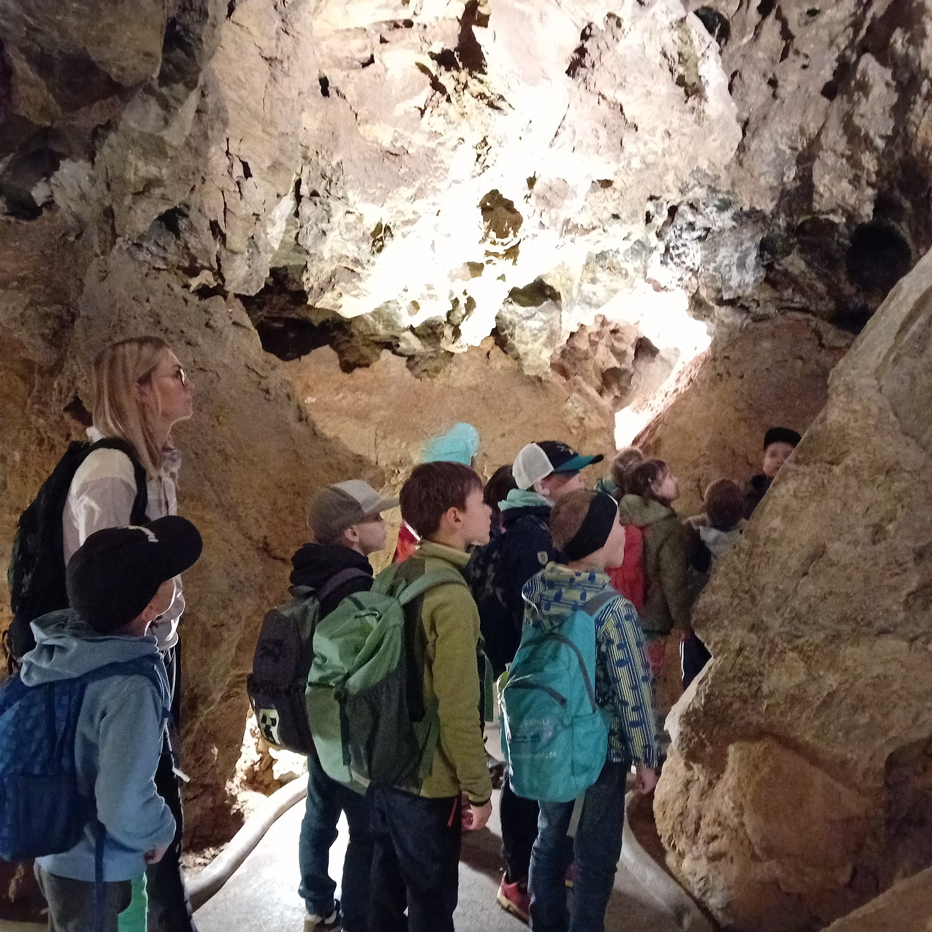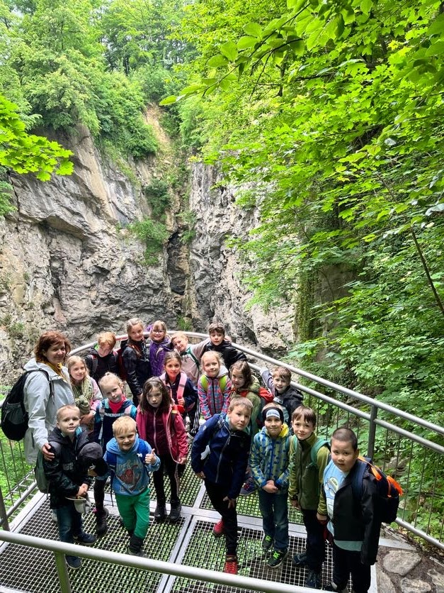 Poslední květnový pátek navštívili světový unikát uprostřed lázní Teplice nad Bečvou - Zbrašovské aragonitové jeskyně. Po sladké tečce v podobě pravých teplých lázeňských oplatek, nákupech nezbytných suvenýrů a doplnění turistického razítka do deníčku se žáci také vydali k Hranické propasti - nejhlubší zatopené propasti na světě přezdívané Tajemná dáma. Hezké počasí žákům umožnilo také posvačit na nedaleké louce a zažít volnost v pohybu s kamarády před návratem na víkend domů.