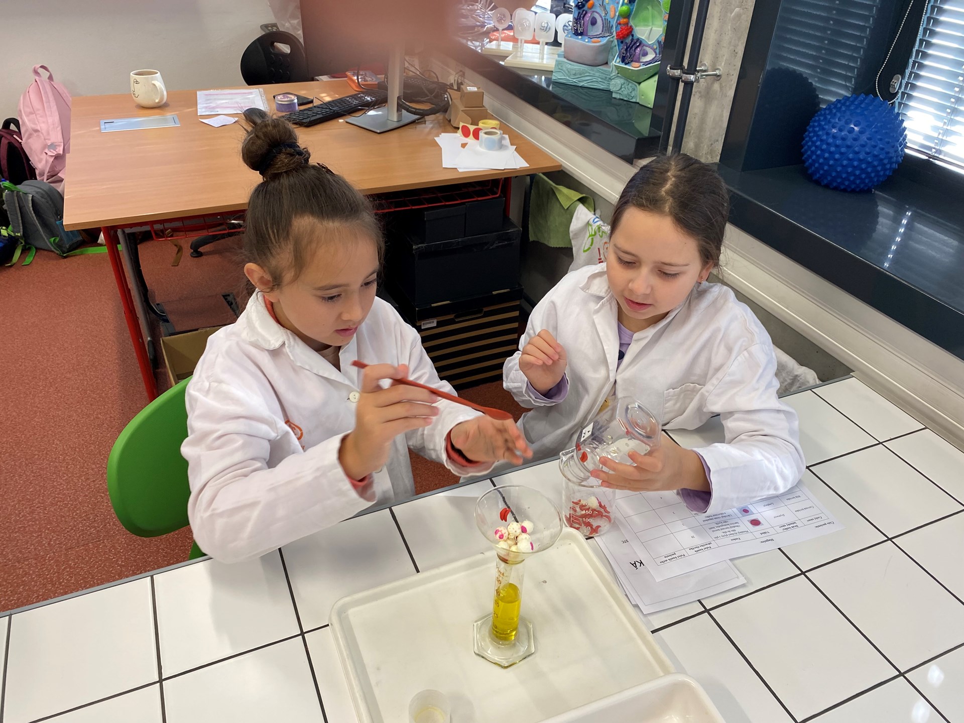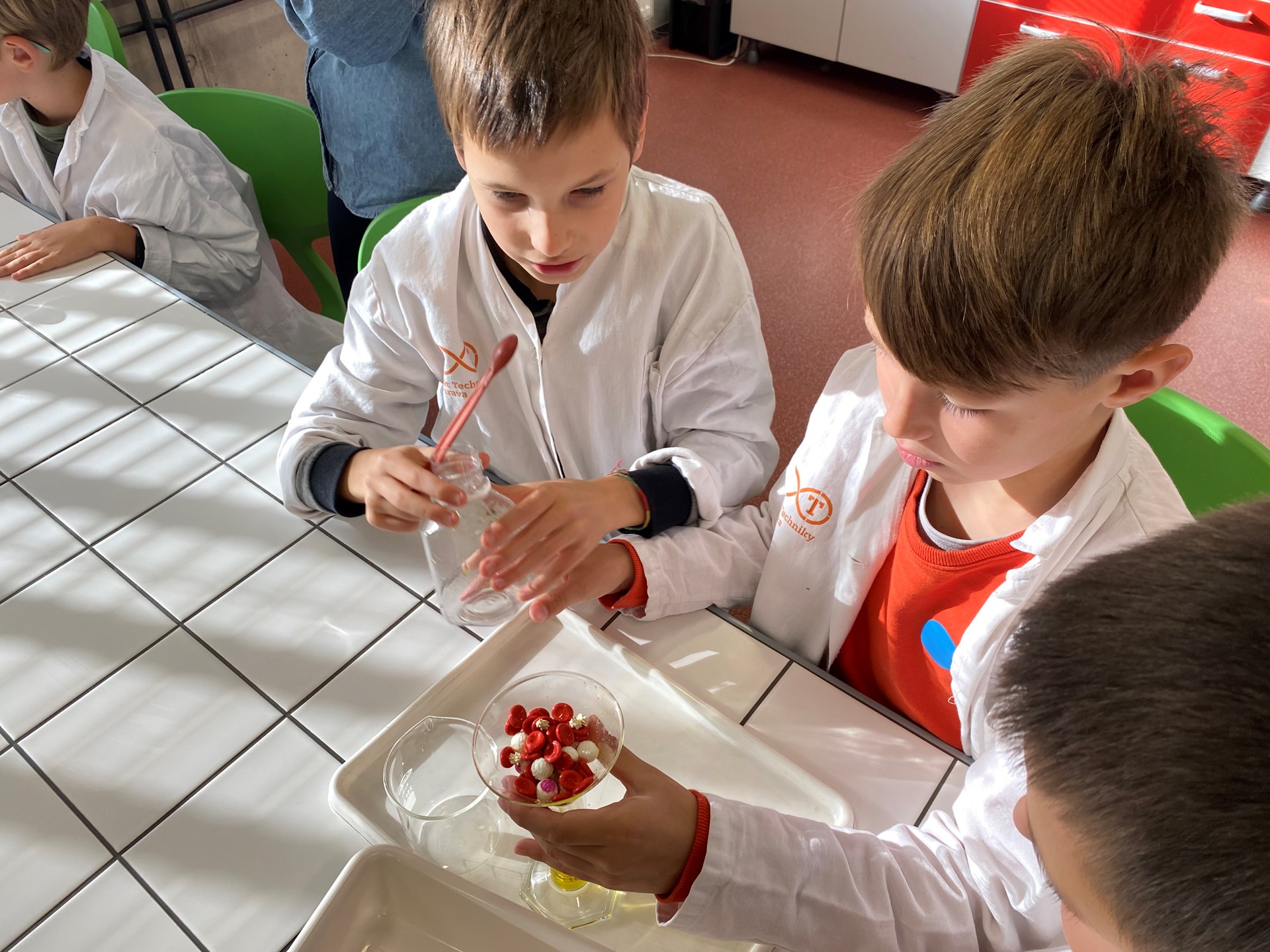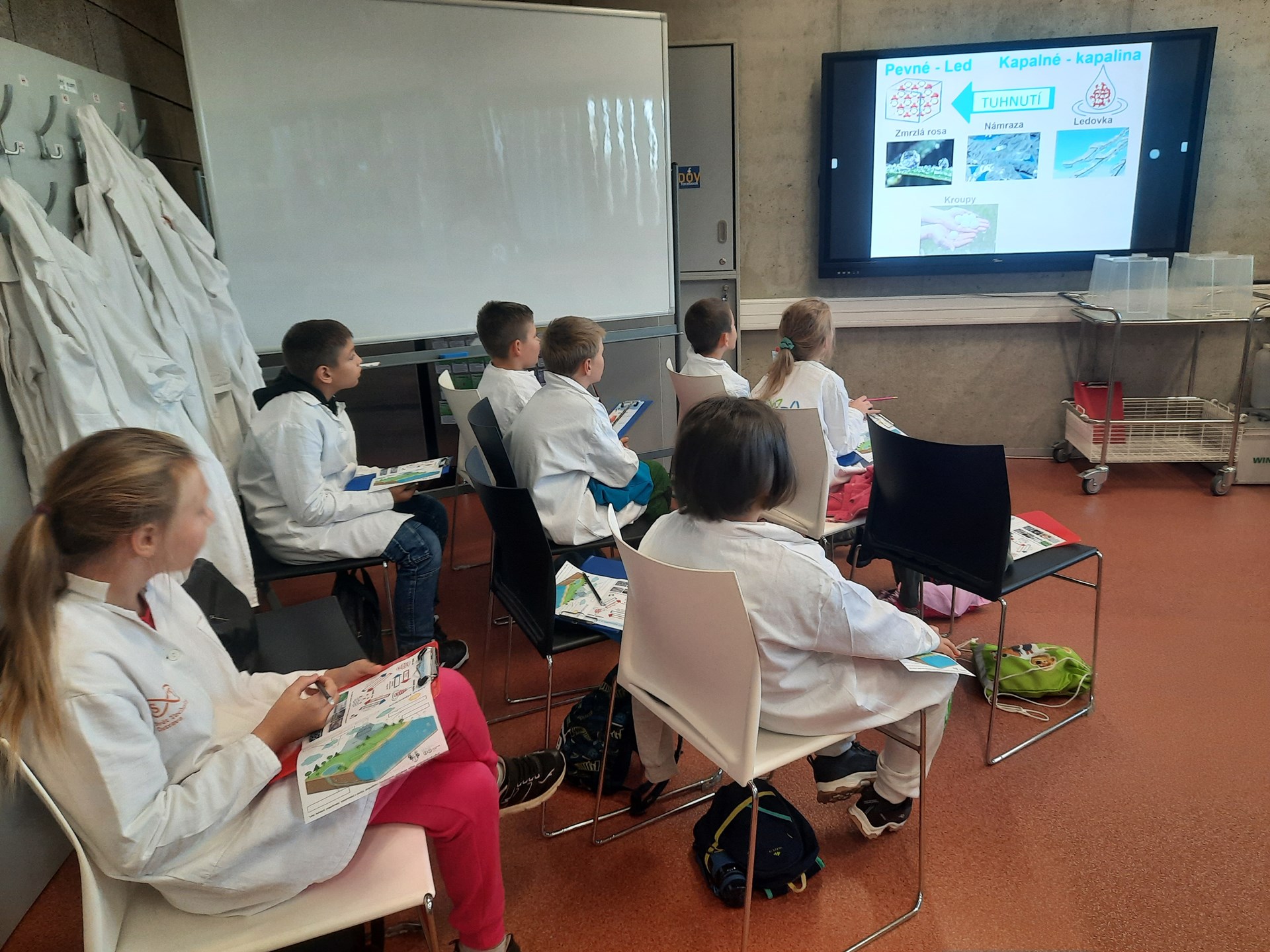 kádinkami, teploměrem, odměrnými válci. Dozvěděli se mnoho zajímavého o přeměně skupenství vody a