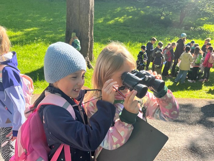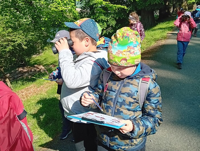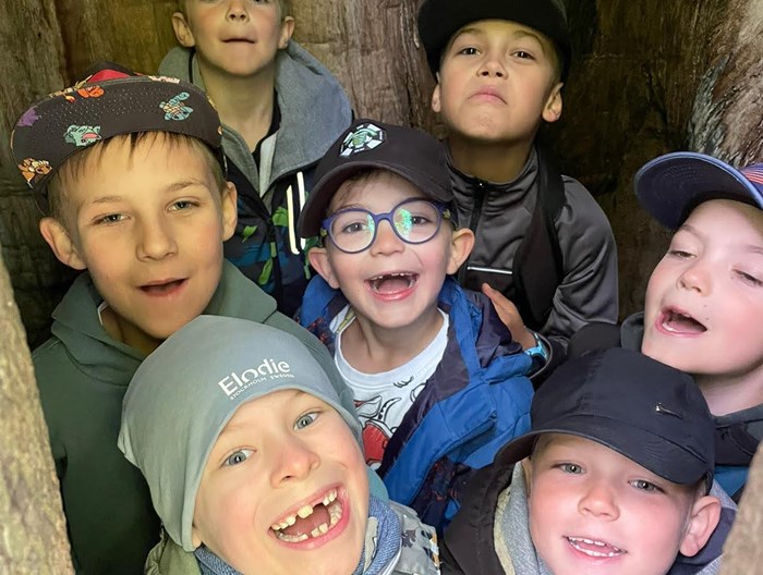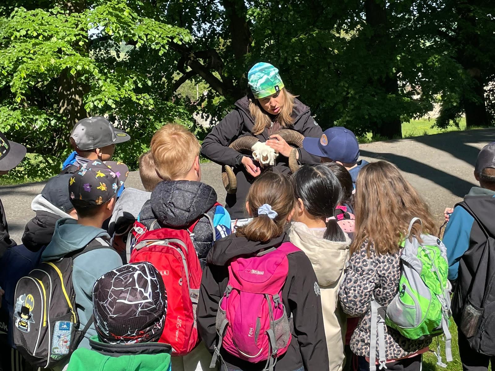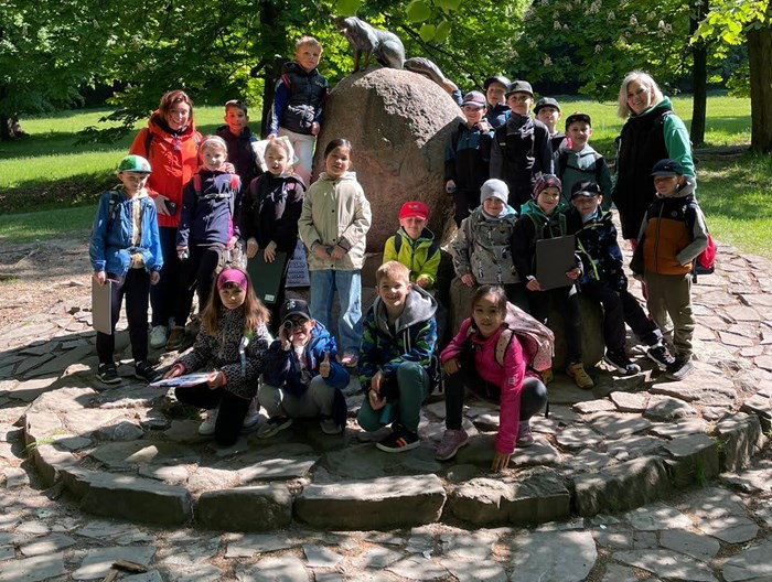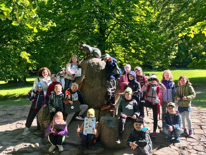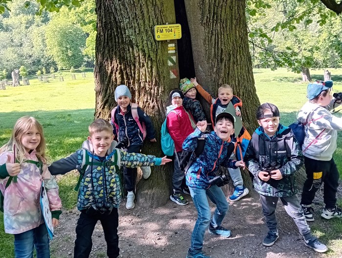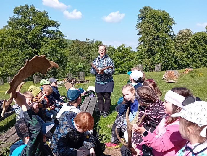 Žáci první a druhé třídy Světa vzdělání si užili pondělní výuku v krásném prostředí Hukvald díky programu "Po stopách obyvatel hukvaldské obory".