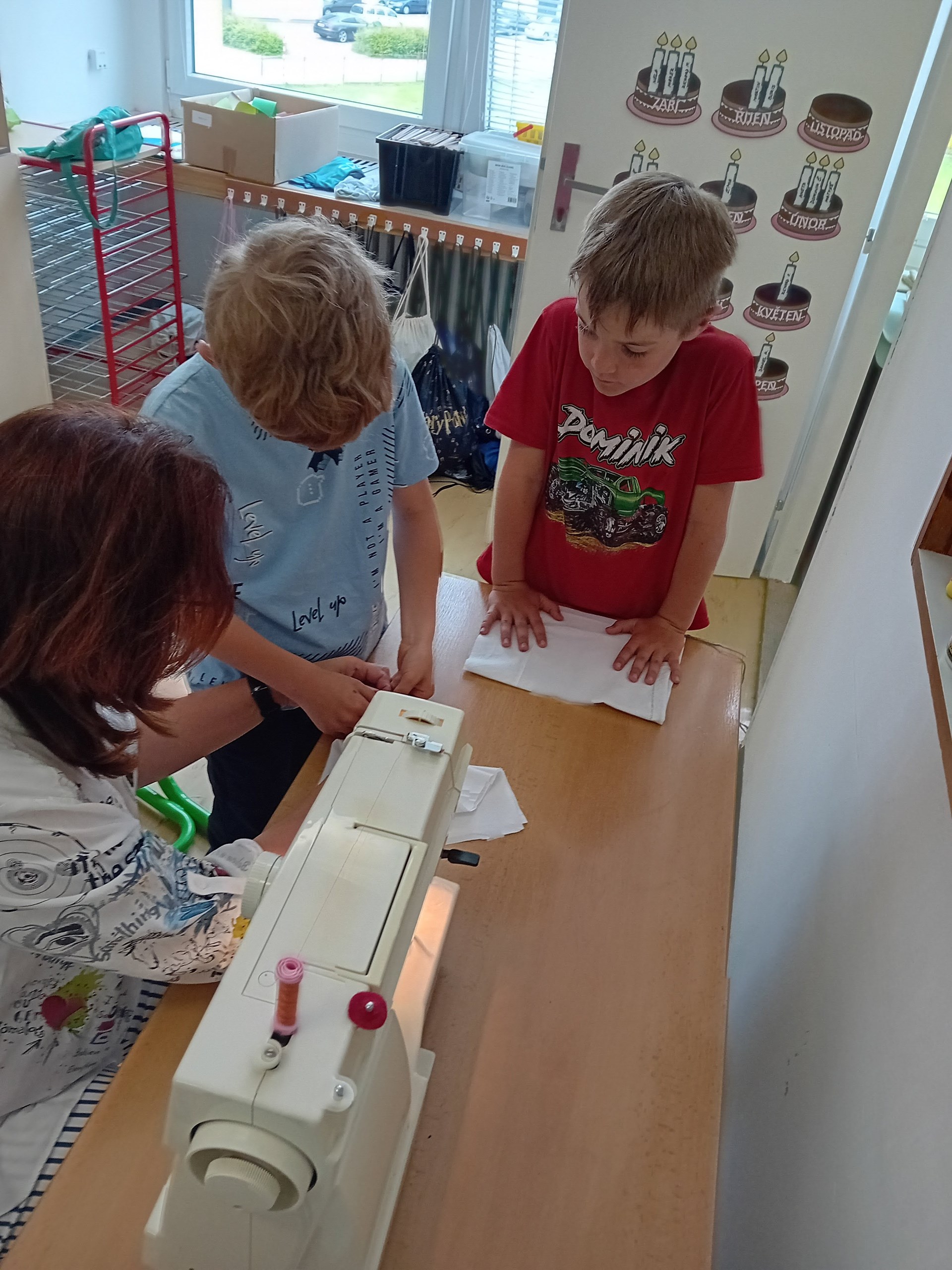 Z dětské zvídavosti a nadšení z objevování vznikl projekt "Prázdninové pytlíky". Vše odstartovalo dumání dětí nad tím, jak se šije pomocí stroje. Protože víme, že děti se lépe učí praxí a vnímáním světa okolo více smysly, tak byly seznámeny s opravdovým šicím strojem.