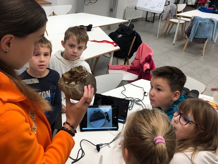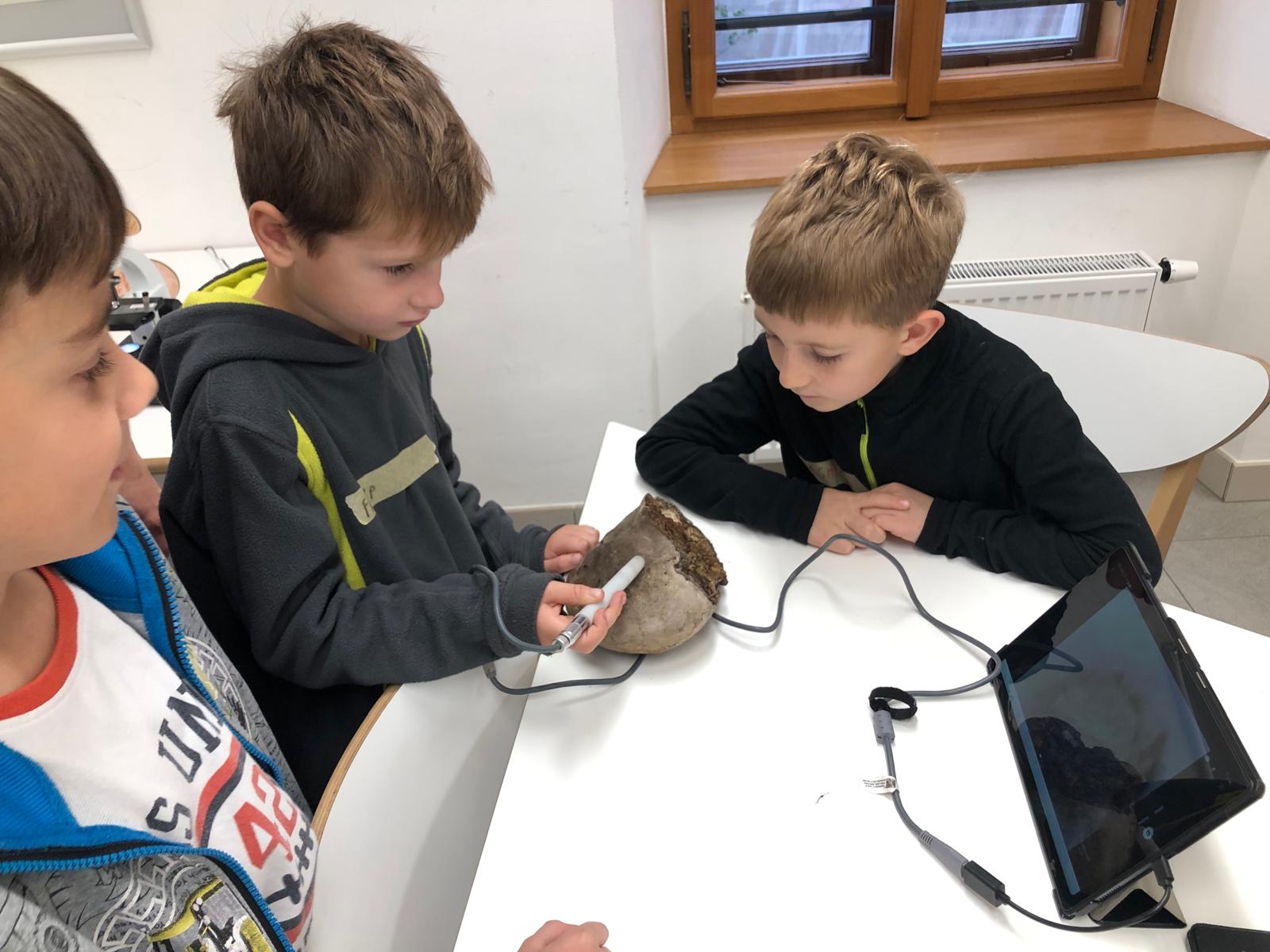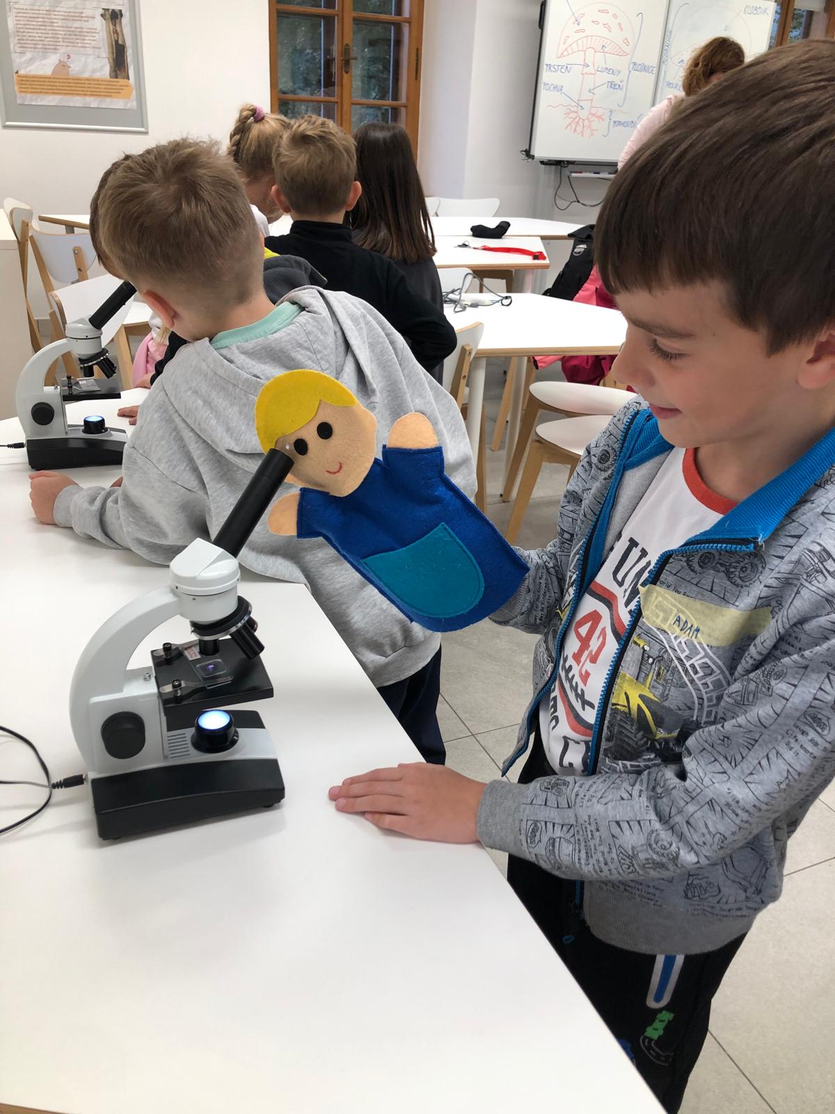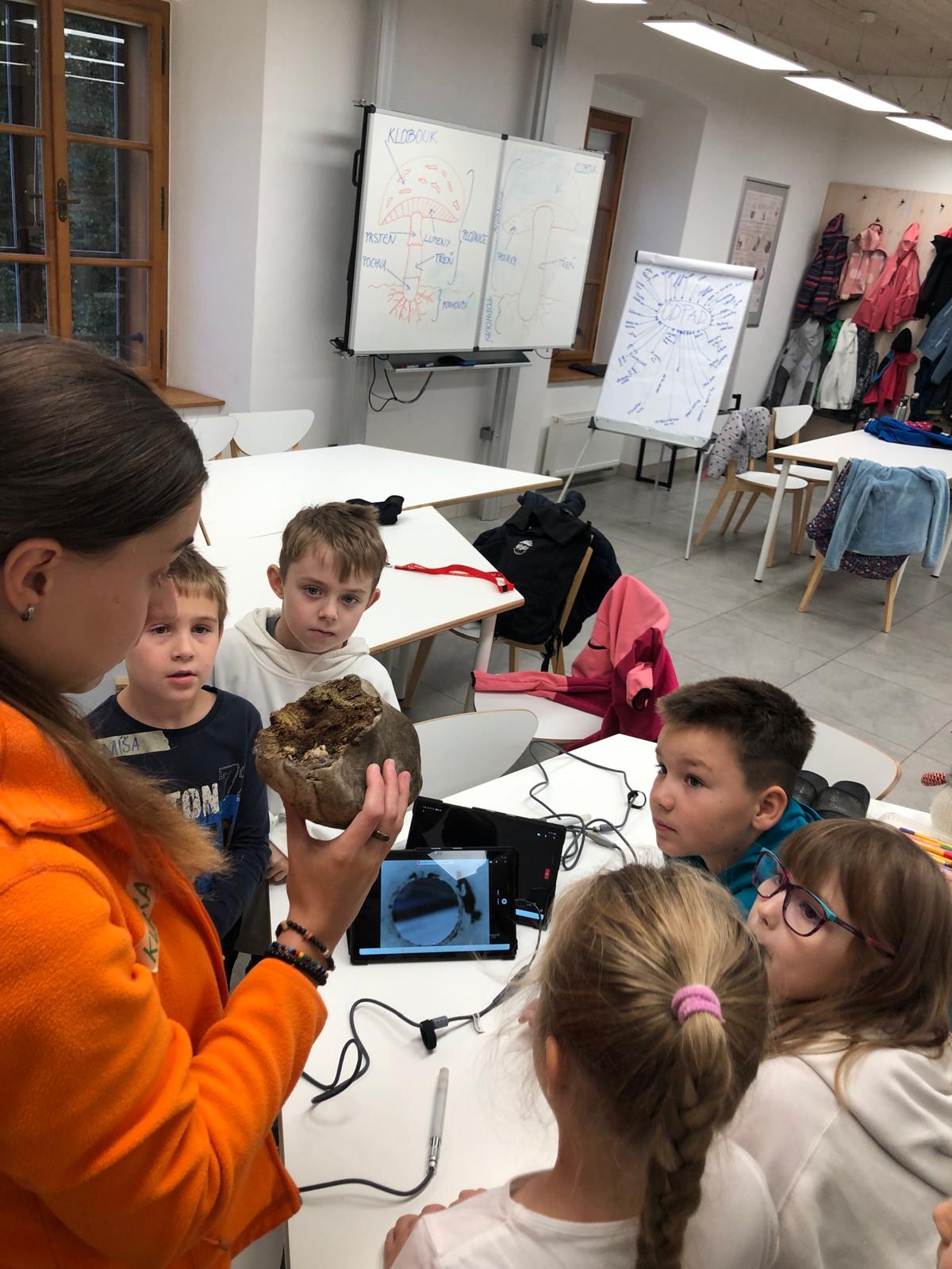 Hned po příchodu nás přivítali lektoři, kteří si pro nás připravili zajímavé povídání, aktivity a hry. Děti měly možnost pozorovat vzorky hub pod lupou a mikroskopem a objevit tak spoustu zajímavých detailů, které běžným okem nevidíme. Jako památku na tento den a taky jako hezkou podzimní dekoraci si mladší děti vytvořily vlastní houbičku ze samotvrdnoucí hmoty a starší děti poznávaly popis těla houby. Nechyběla ani terénní část v okolí ekocentra.