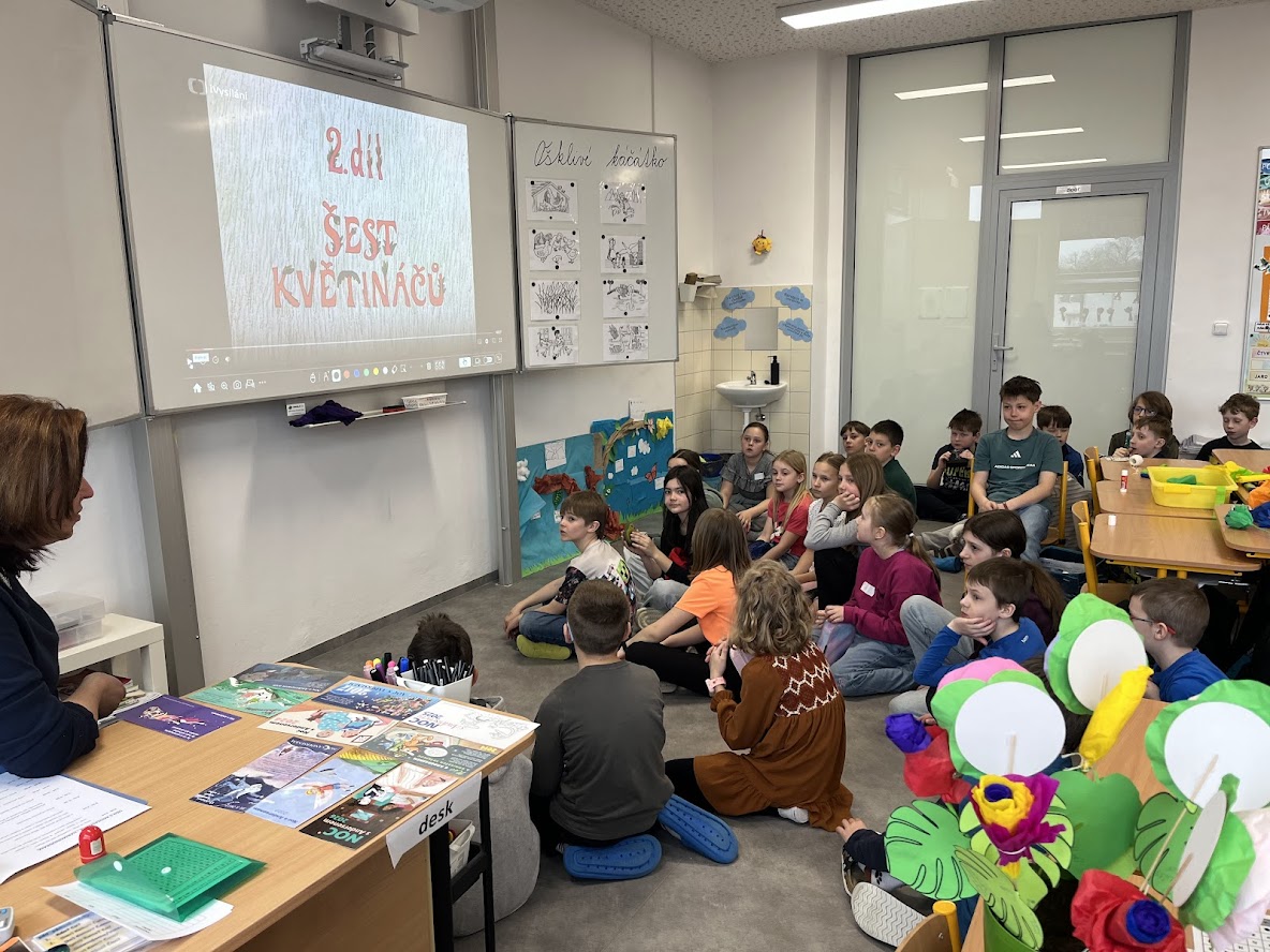 Již druhým rokem se na naší škole uskutečnil velký projektový den pro žáky 1. stupně zaměřený na čtenářství. Děti pracovaly ve skupinách napříč ročníky a jejich průvodci se stali žáci ze 7. B. Ti je provázeli po jednotlivých stanovištích a po celou dobu se o ně starali s obdivuhodnou péčí, trpělivostí a zodpovědností.