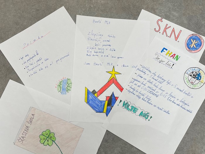 Je vidět, že fantazie páté třídy nezná mezí a že největším tématem dne je bezpochyby školní jídelna – tam by se podle dětí dalo zlepšovat pořád. Kdo ví, třeba se některý z těchto nápadů jednou opravdu dostane do „velké politiky“.