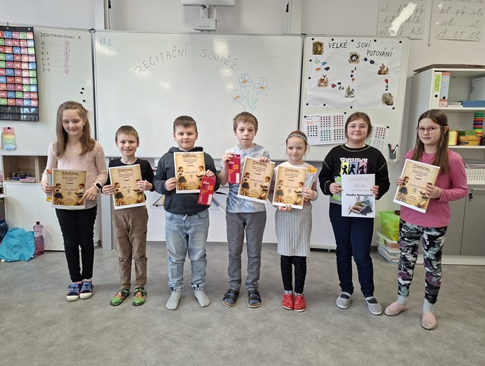 Ve středu 18. února se na naší škole uskutečnilo školní kolo recitační soutěže. Soutěžící si připravili básně různých autorů i žánrů a předvedli obdivuhodné výkony.