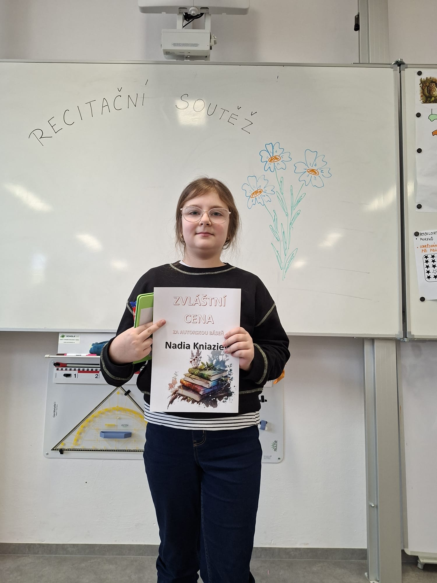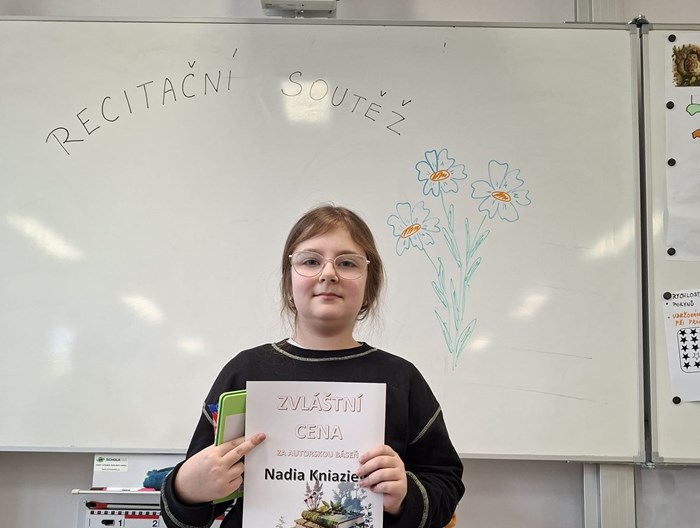 Zazněly básně klasických autorů i moderních básníků. Někteří soutěžící sáhli například po tvorbě Jiřího Žáčka nebo Miloše Kratochvíla, jiní překvapili méně známými, ale velmi působivými texty. Každé vystoupení bylo jedinečné a zasloužilo si potlesk. Překvapila nás také autorská tvorba ukrajinské žákyně 3. C Nadiy Kniazievy, kterou porota ocenila zvláštní cenou.