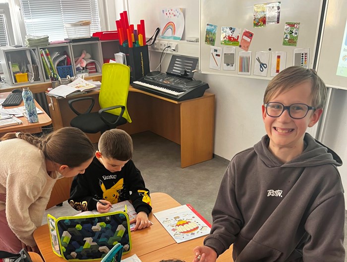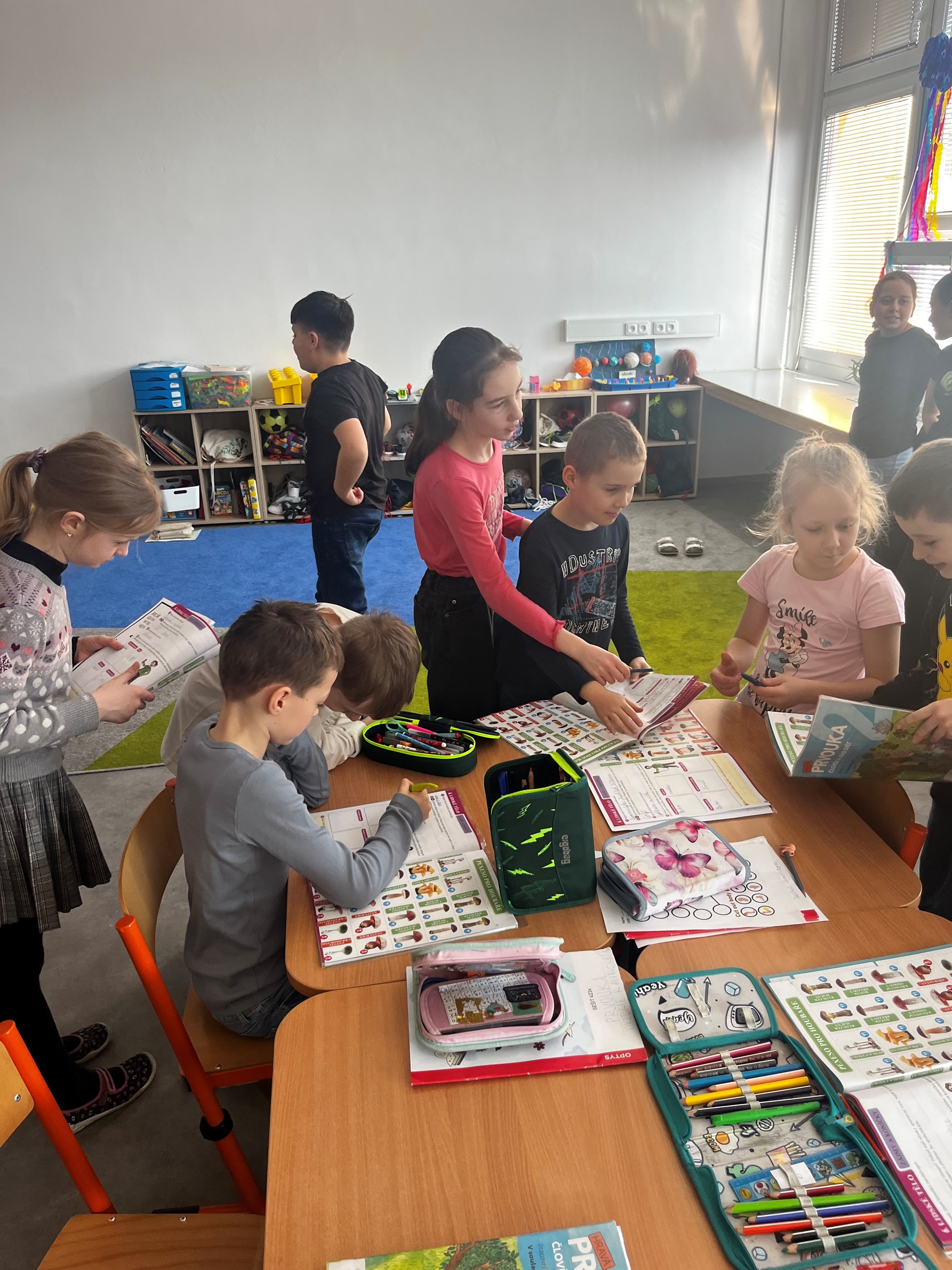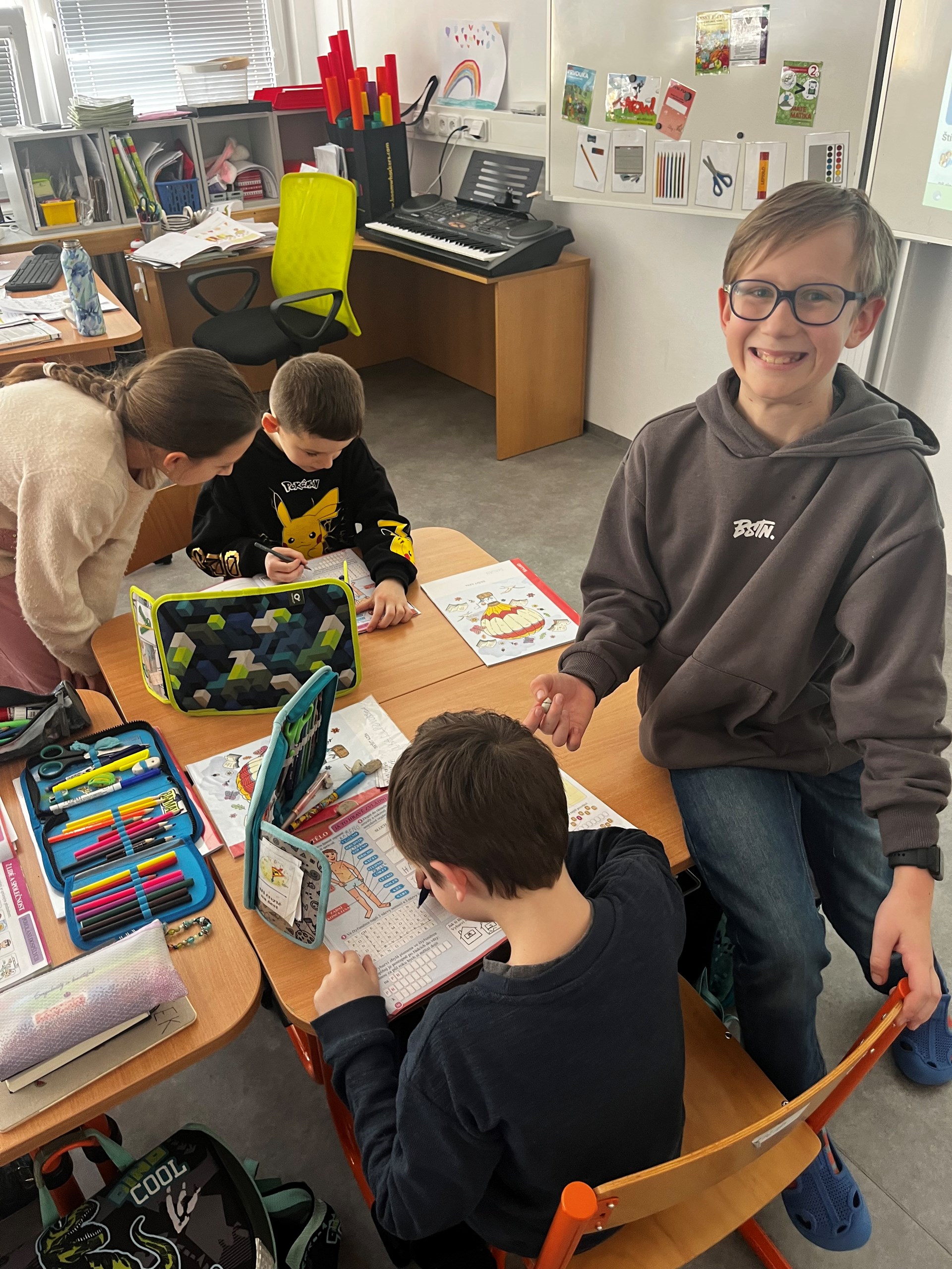 Před prázdninami jsme měli krásnou příležitost spojit dvě třídy světa vzdělání – 2. a 5. ročník. Učivo o lidském těle, které právě probírají druháčci, jsme propojili s hodinou tělesné výchovy páťáků. Začali jsme rozcvičkou plnou pohybu, pak děti pracovaly ve smíšených skupinkách, kde starší žáci ochotně pomáhali mladším, vysvětlovali jim jednotlivé úkoly a podporovali je při plnění aktivit. Spolupráce napříč ročníky všechny velmi těšila.