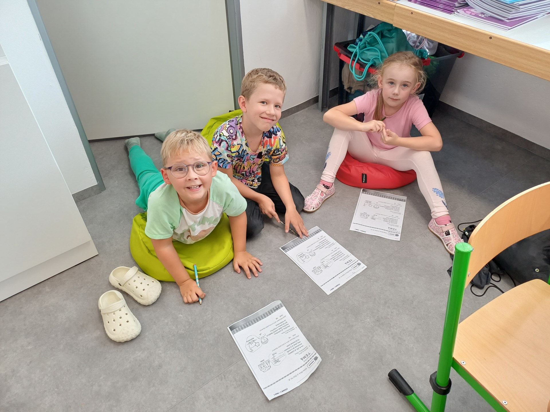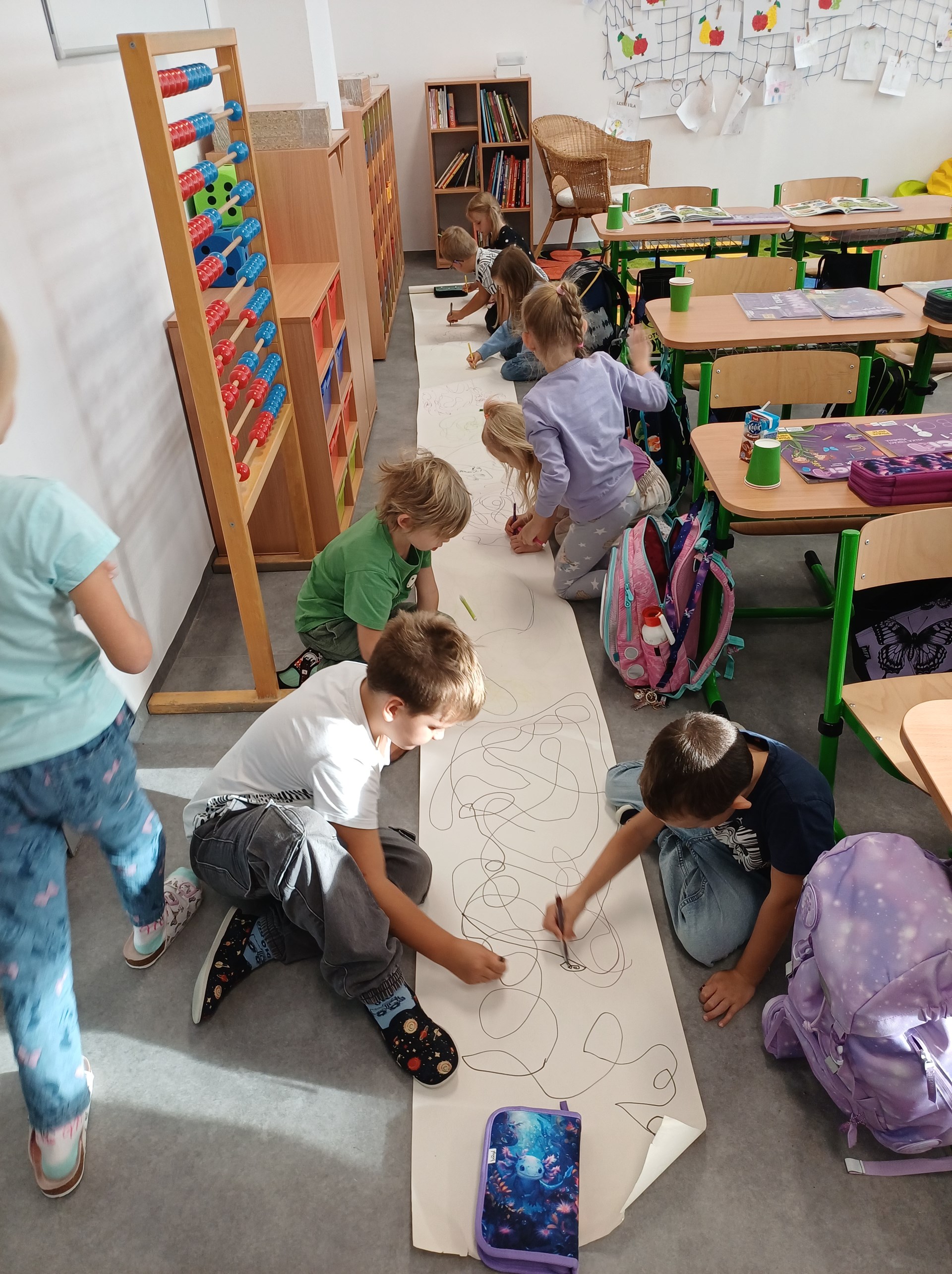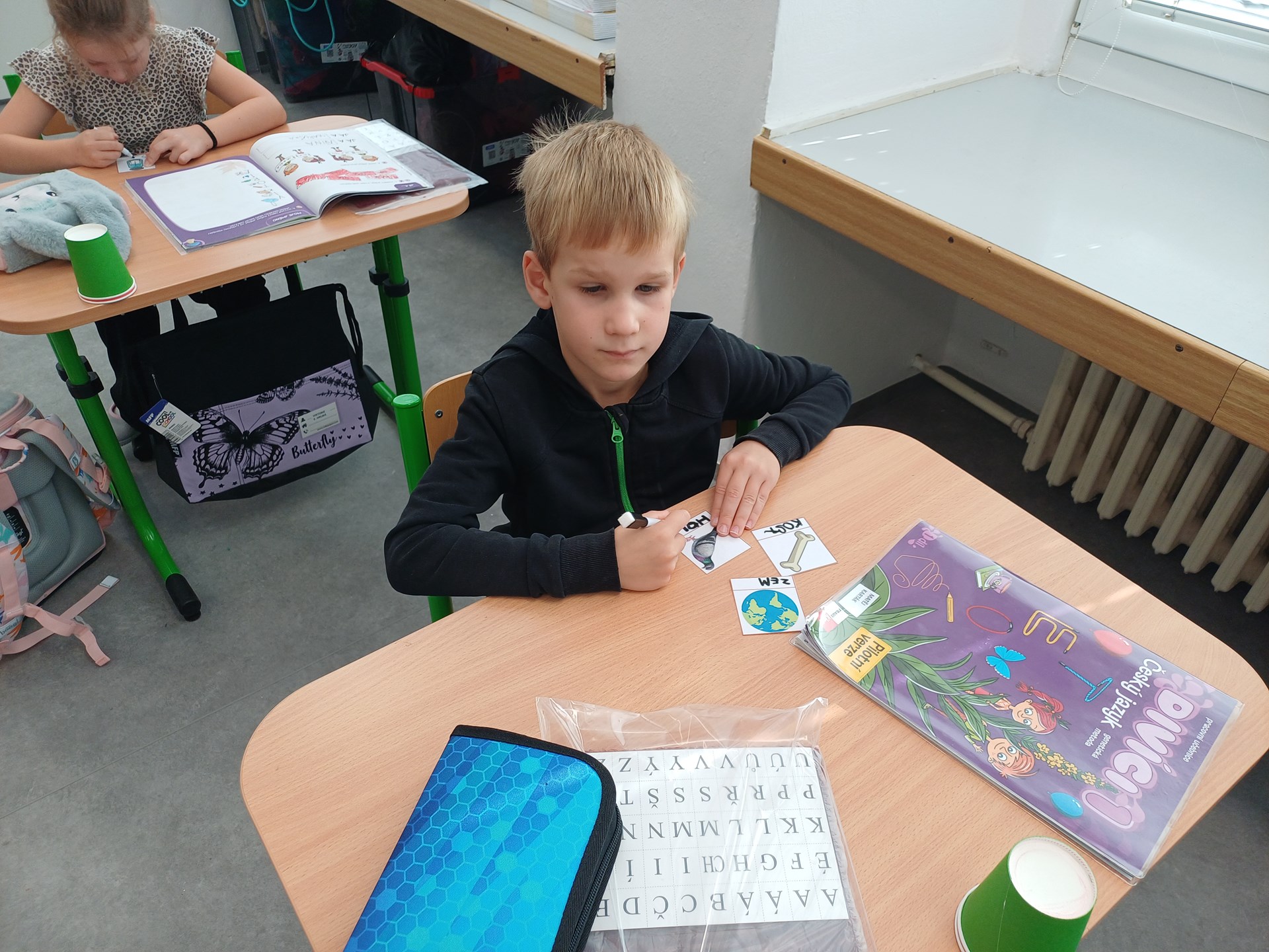 Druhý týden se pustili do skutečné školní práce. V českém jazyce si hráli s písmenky, v matematice se seznamovali s novými prostředími a pomůckami. Jednoznačným vítězem v soutěži oblíbenosti se staly krychle. Velmi brzy děti zvládly i první skupinové práce a práci na stanovištích. V září se také konal tradiční Adapťáček pro prvňáčky, ve kterém měly děti možnost se více poznat a dozvědět se i pár zajímavostí o své paní učitelce, zažily Duhový den a spoustu zábavy v hodinách angličtiny i tělocviku.