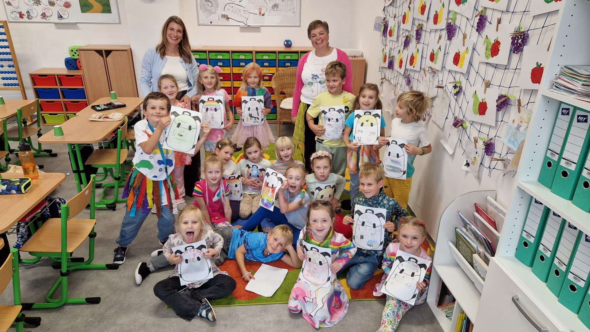 Prvního září usedli do lavic také prvňáčci v 1. A. Den zahájila paní ředitelka Mgr. Zdeňka Havlíková v atriu školy. Poté se již děti přemístily ke svým třídám a prvňáčci slavnostně vskočili do třídy. První den si všichni užili a s rodiči odcházeli plni očekávání, co je v následujících dnech v novém prostředí čeká.
