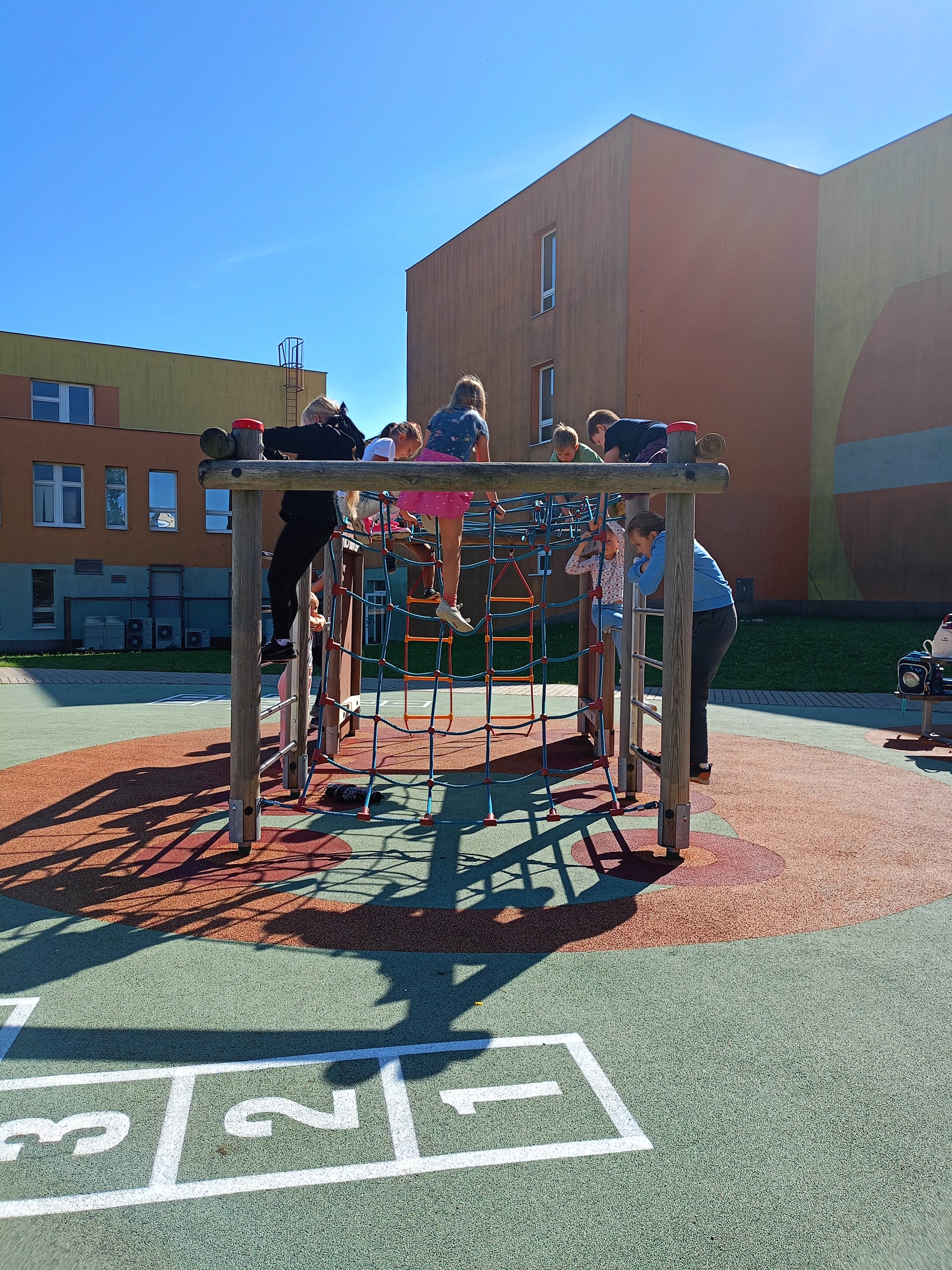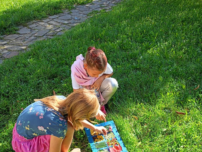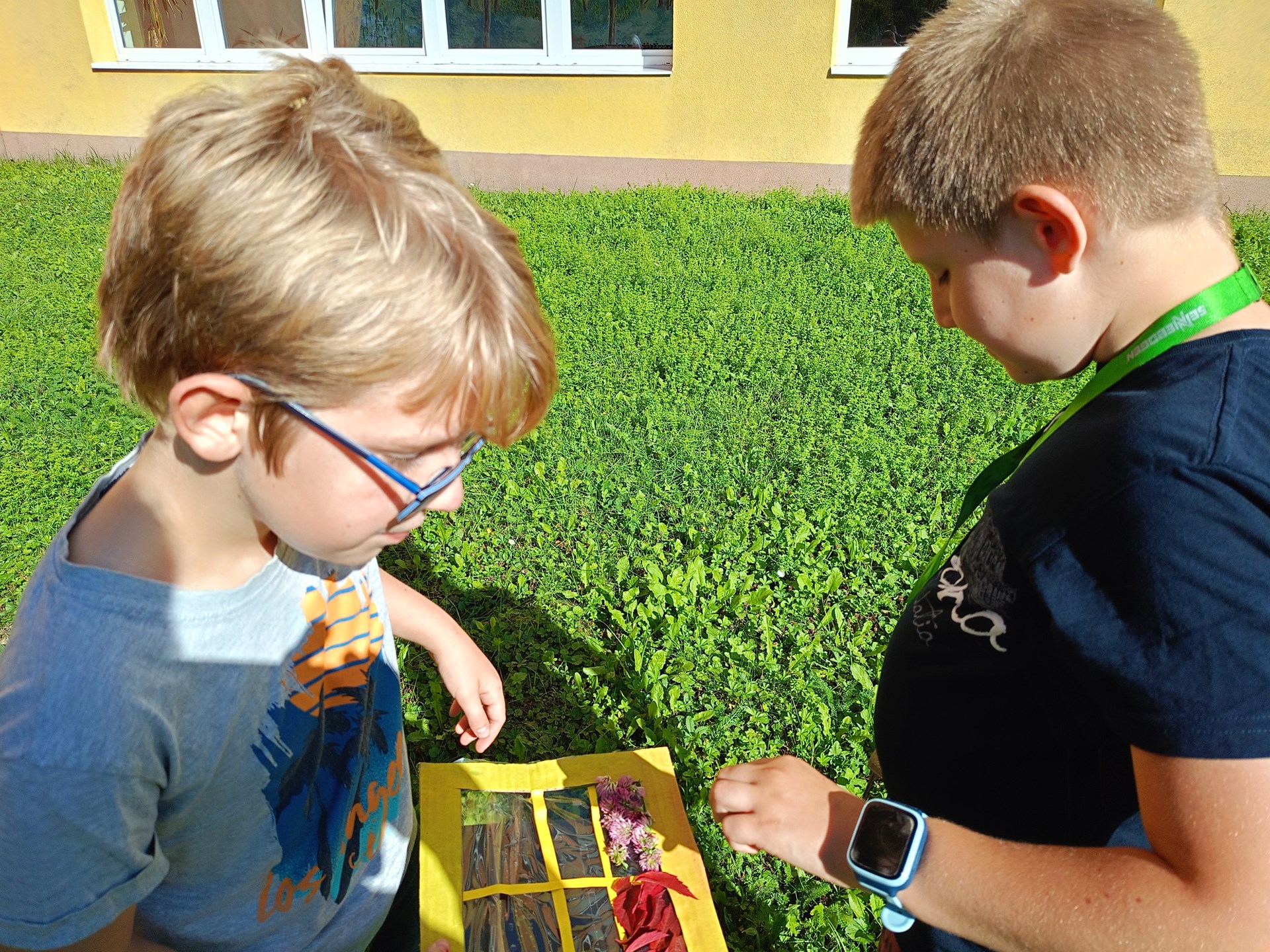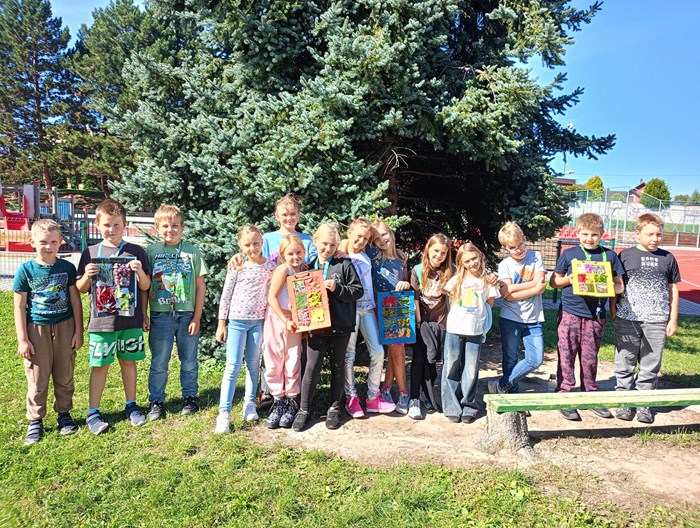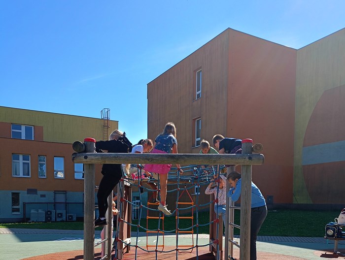 Je krásně, a tak proč být ve třídě, když můžeme být venku? Třída 4. A se rozhodla tvůrčím způsobem opakovat zlomky, o přestávce si zacvičit na průlezkách a poté si v klidu číst ve vonném stínu borovic zajímavou knihu ze školního knižního boxu.